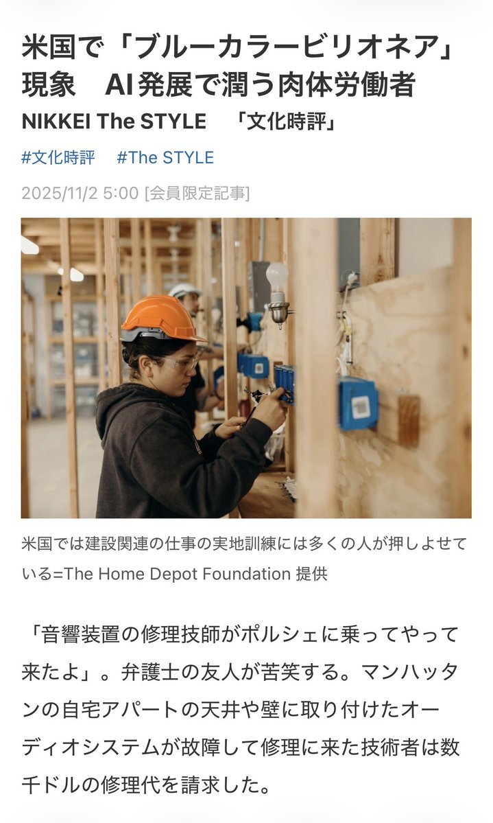 ブルーカラーの仕事をバカにしてた人達ともうそろそろ立場逆転するぞ。 アメリカでは今、 ブルーカラービリオネアって呼ばれる人達が増えてる。 AIとロボットが進化して ホワイトカラーの仕事がどんどん奪われる中で、逆に現場職が再評価されてる。