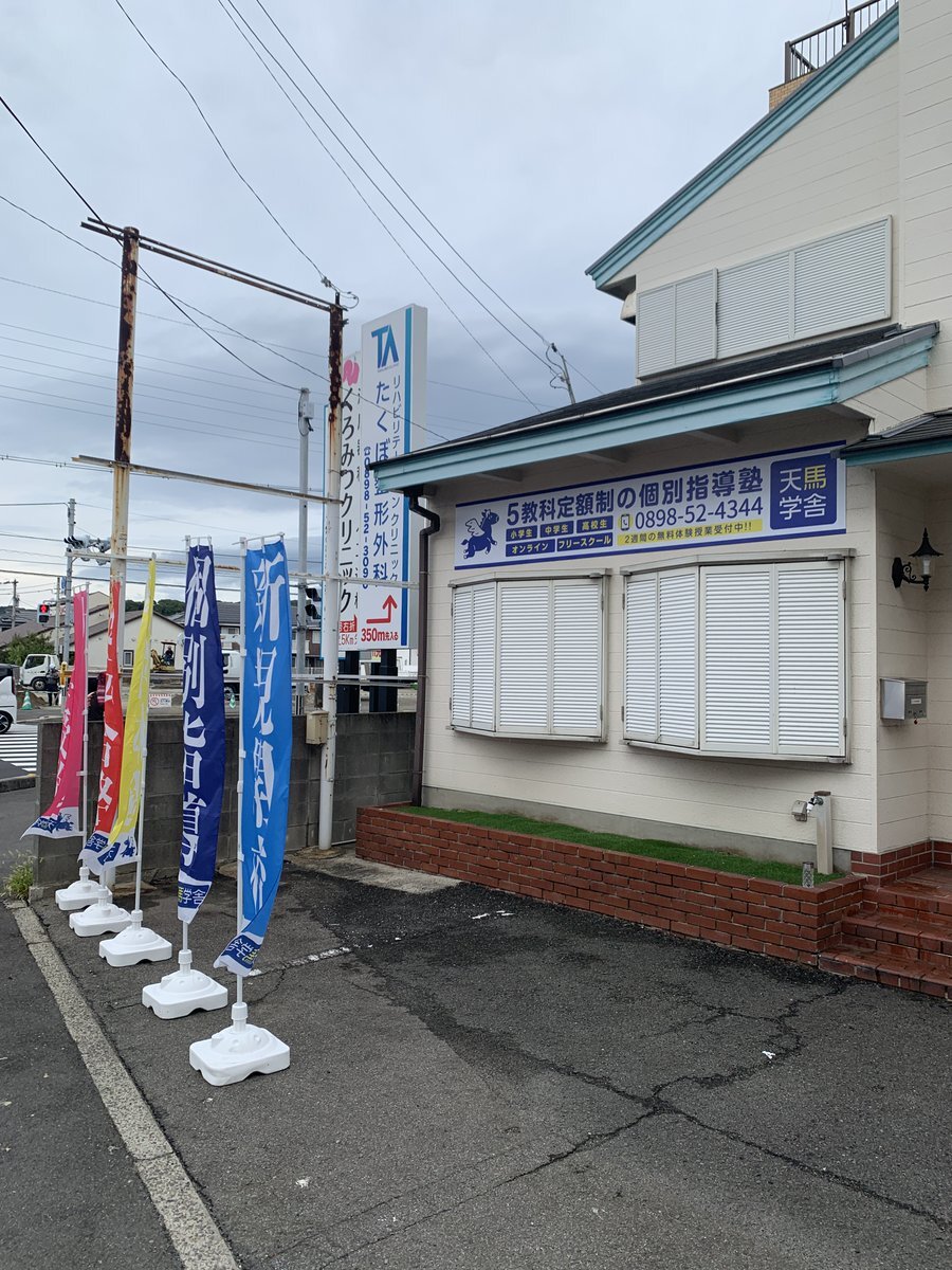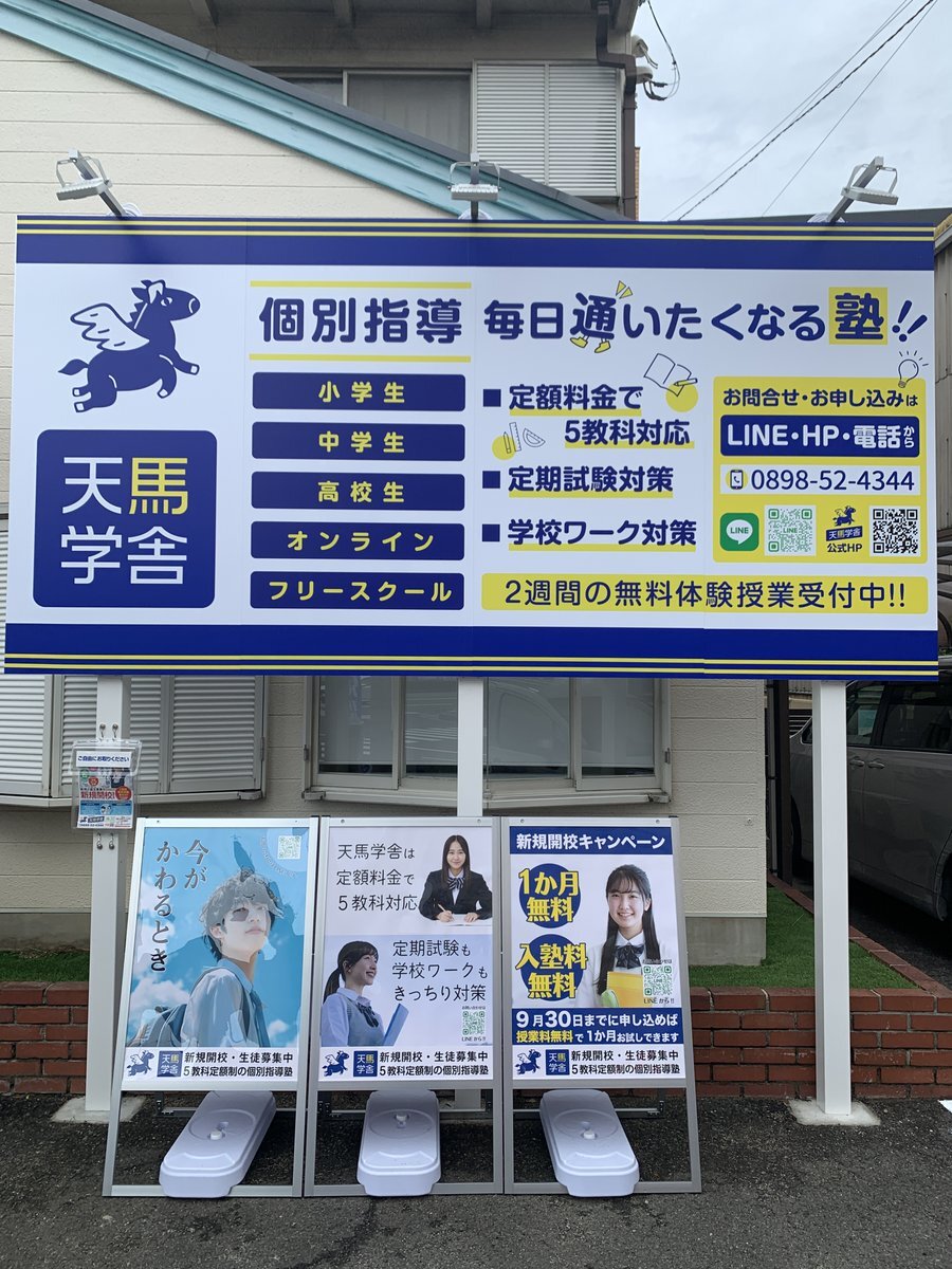 看板が完成しました!! 毎日通いたくなる!5教科定額制の個別指導塾がそよら今治の目の前にオープン!! 今なら入塾金無料!2週間の無料体験受付中!! #天馬学舎 #今治 #学習塾 #個別指導 #受験 #定額制 #5教科 #英検 #英会話 #自立学習 #通いやすい #割引 #西中 #日高 #乃万 #日吉 pic.x.com/B52BOlBJSU