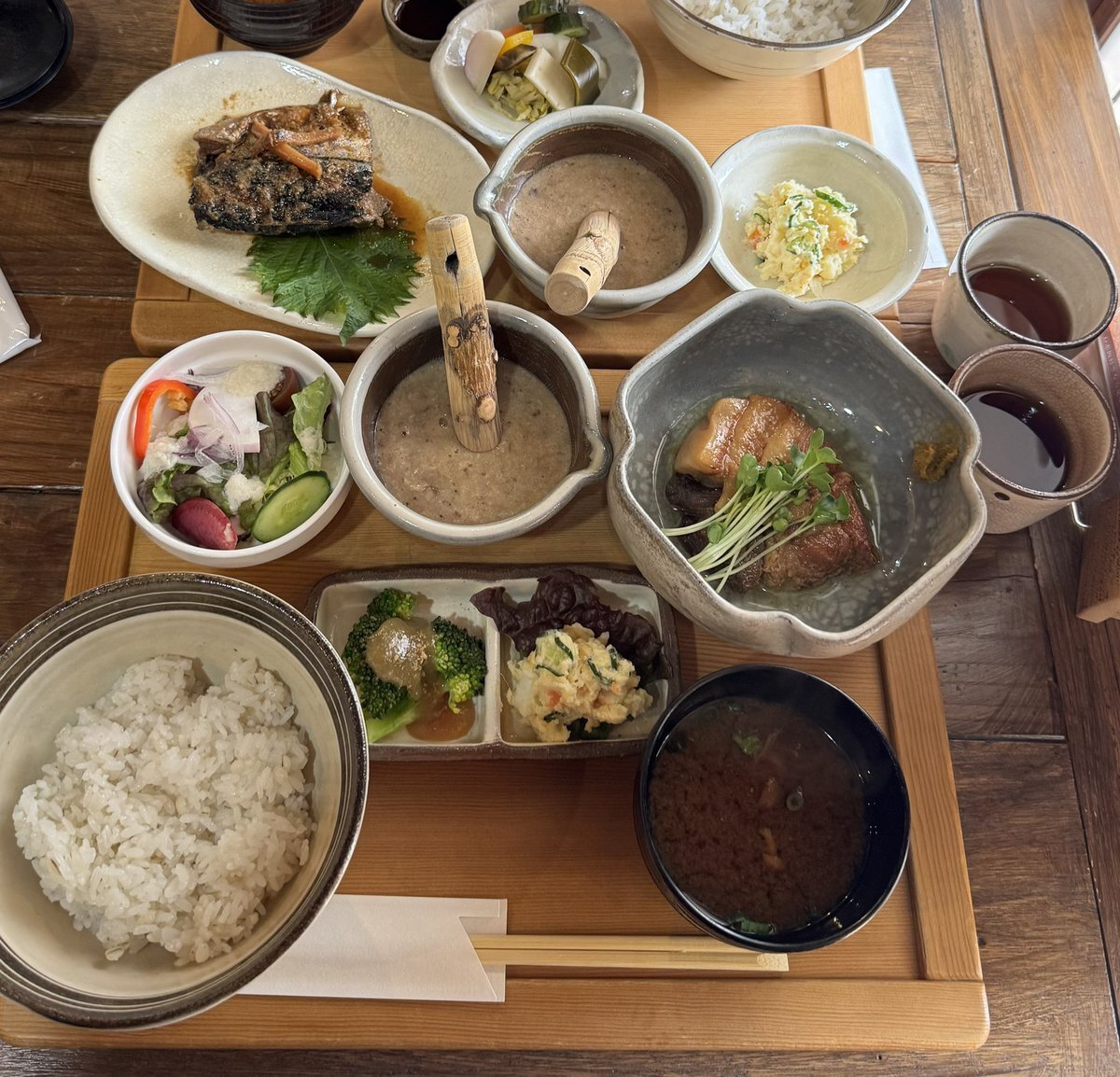 #筥崎とろろ 高宮通り店 福岡県福岡市南区 野間1−1−9 少し遅いランチ14時すぎ頃 すでに日替わり膳は売り切れ😫 ちょっと贅沢に「豚の角煮膳」 お肉柔らか〜い 連れは「さばのぬか床煮」 🍚すすむ〜 #ごはん #ランチ #とろろ #自然薯 #定食 #FAV