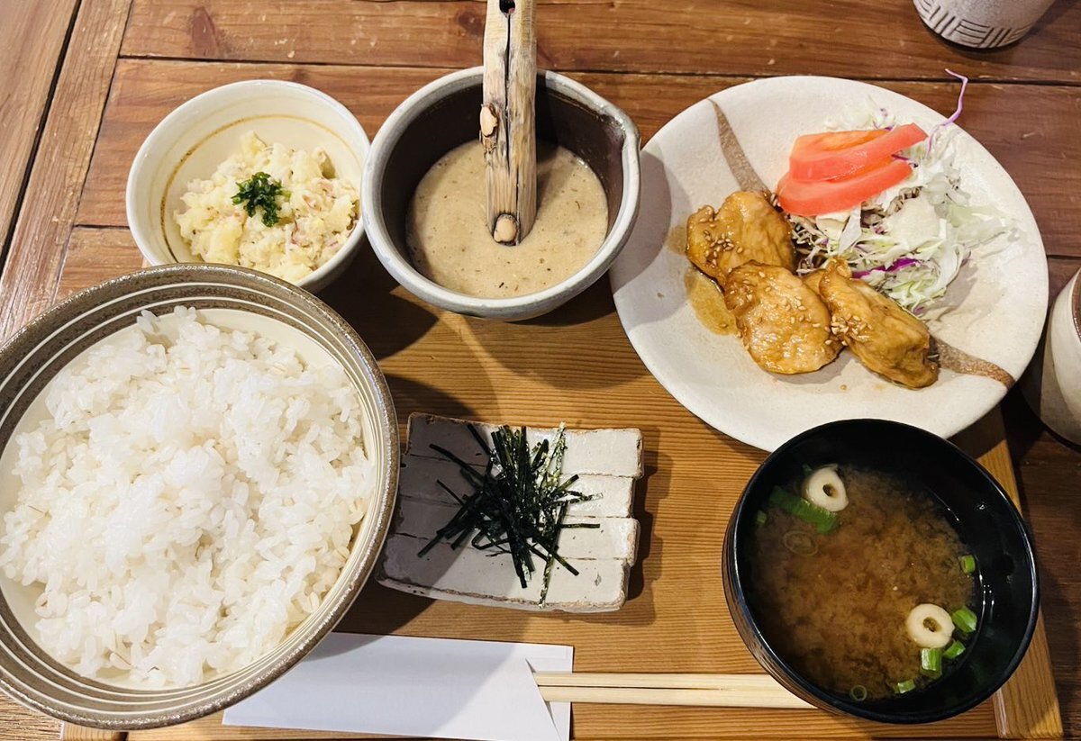 #筥崎とろろ 高宮通り店 福岡県福岡市南区 野間1−1−9 日替り定食 鶏胸肉の甘辛揚げ 大人のポテトサラダ #ランチ #ごはん #定食 pic.x.com/s2SArUpgMq x.com/oubaitori34/st…