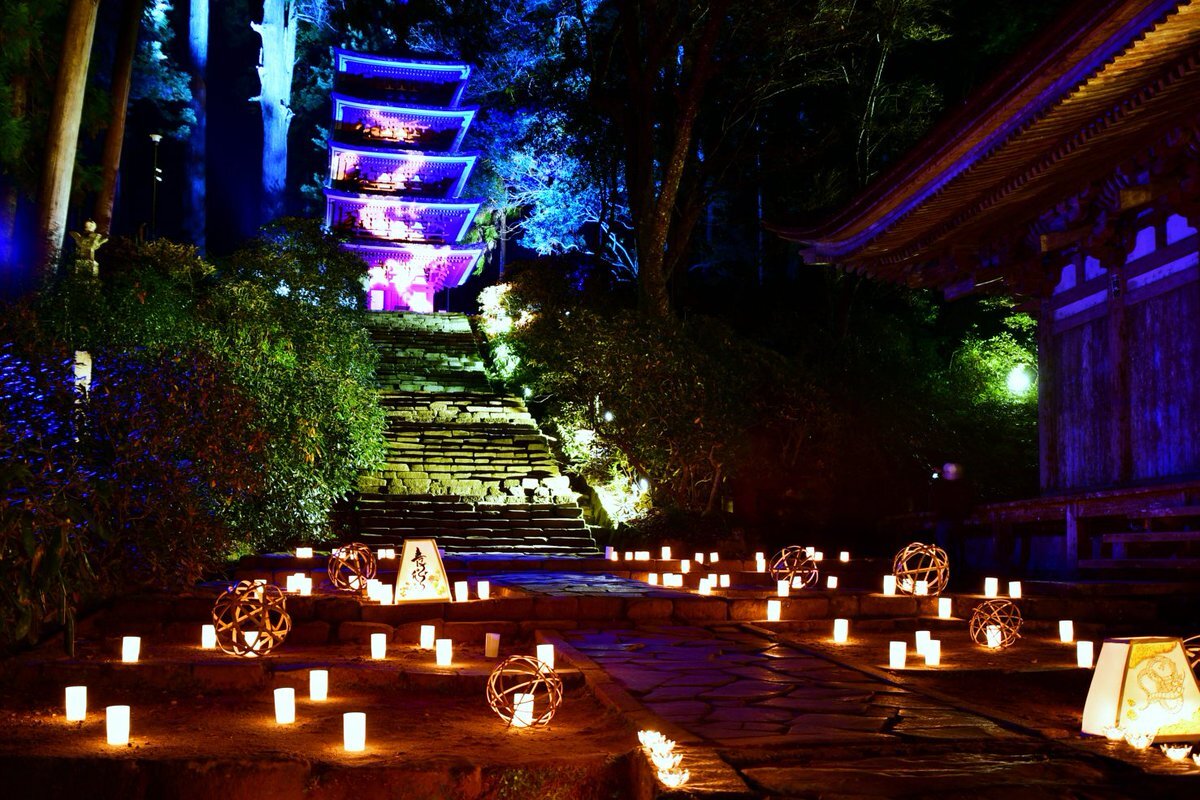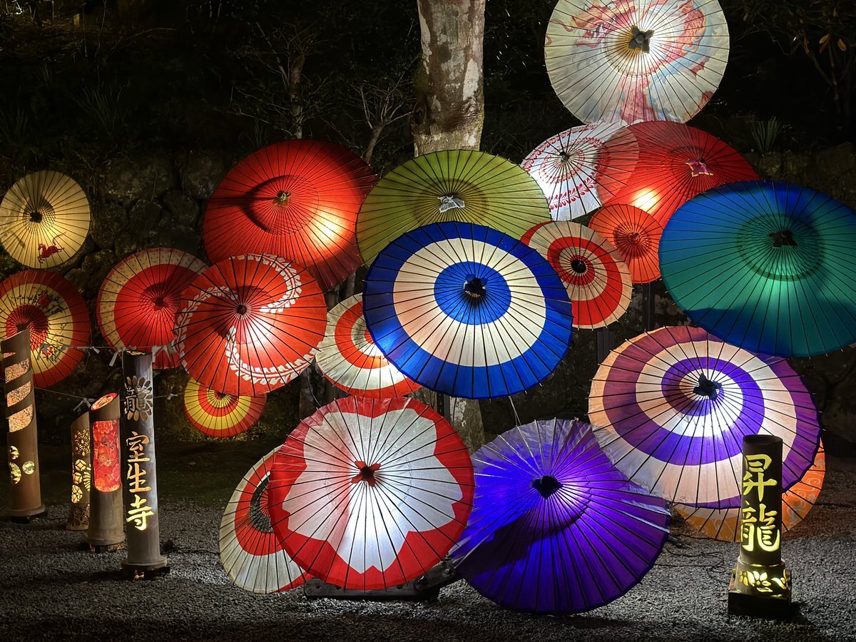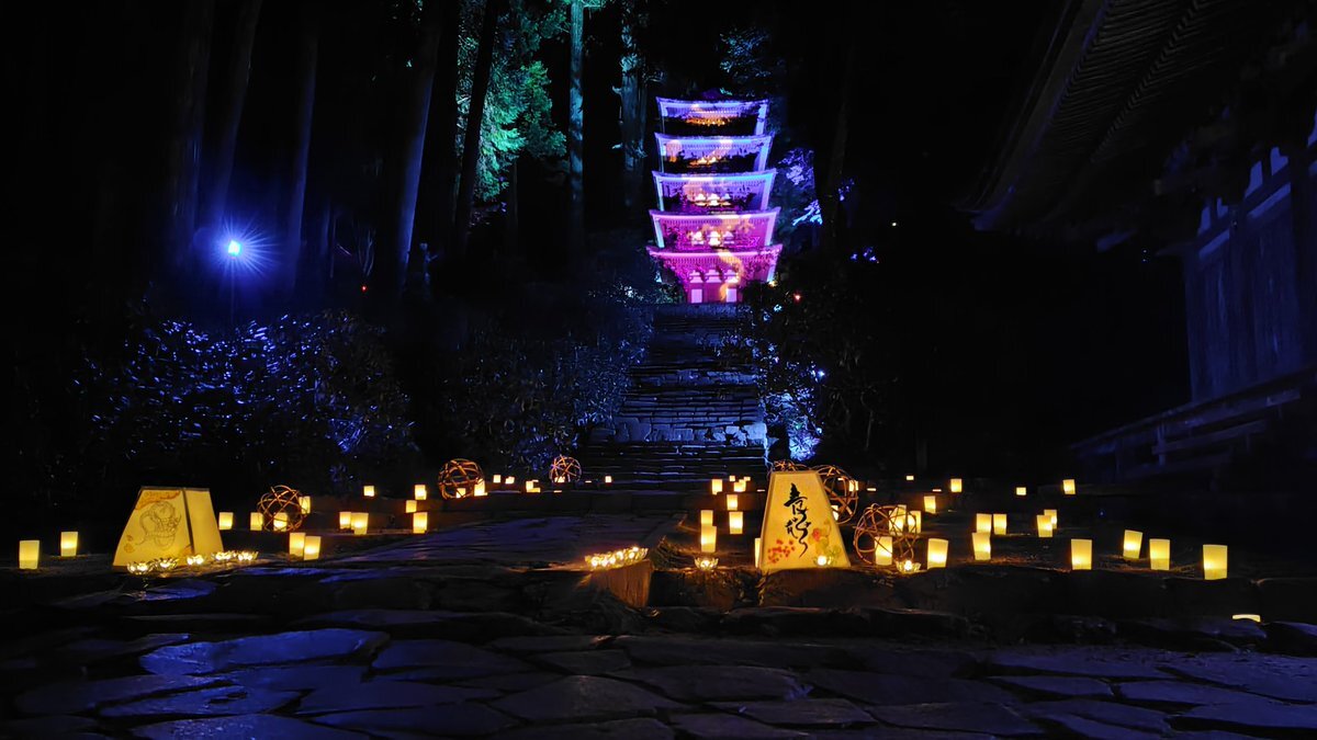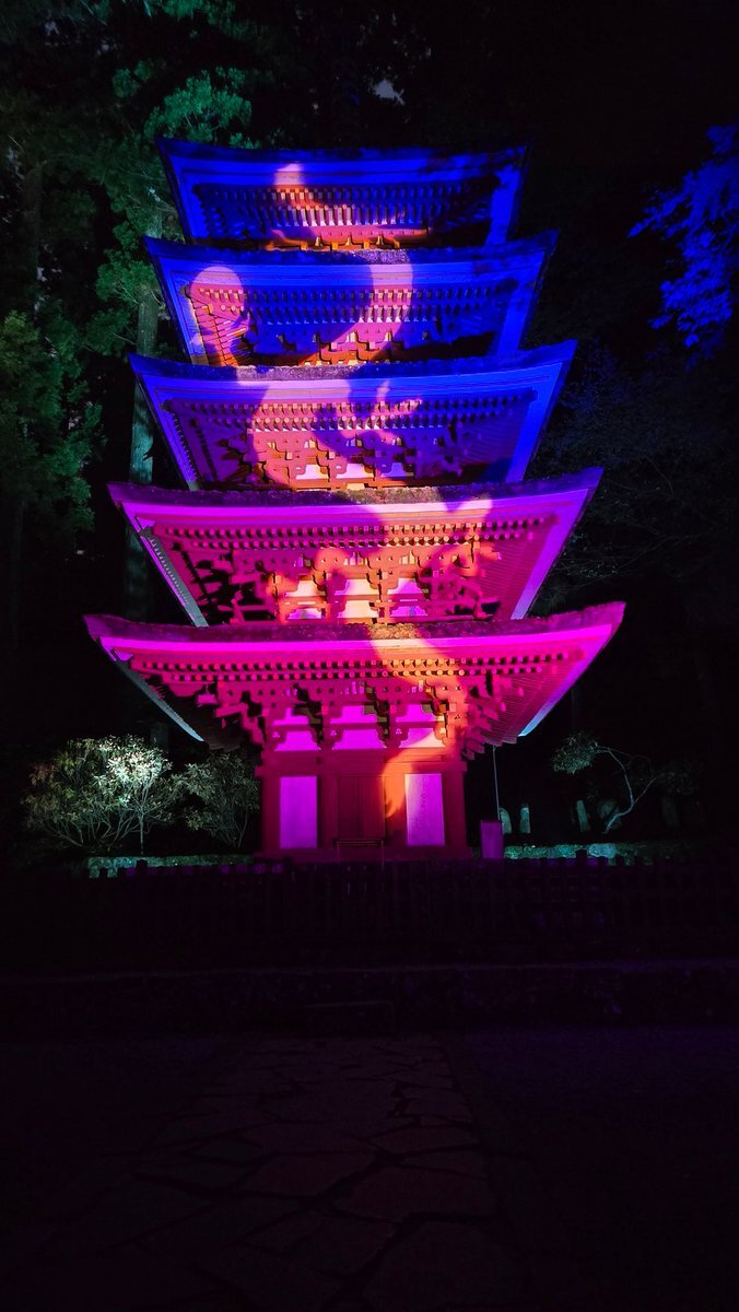 \室生寺 紅葉ライトアップ🍁💡/ 山深き紅葉の名所 #室生寺 では、11月の土日祝に紅葉のライトアップが行われます。 国宝・五重塔に青龍が写し出され、とても幻想的な雰囲気に包まれます✨ 期間中は、もみじと和傘が競演する光のアートなど、スペシャルな体験を楽しめますよ🎵 pic.x.com/WMSBuYXSwO
