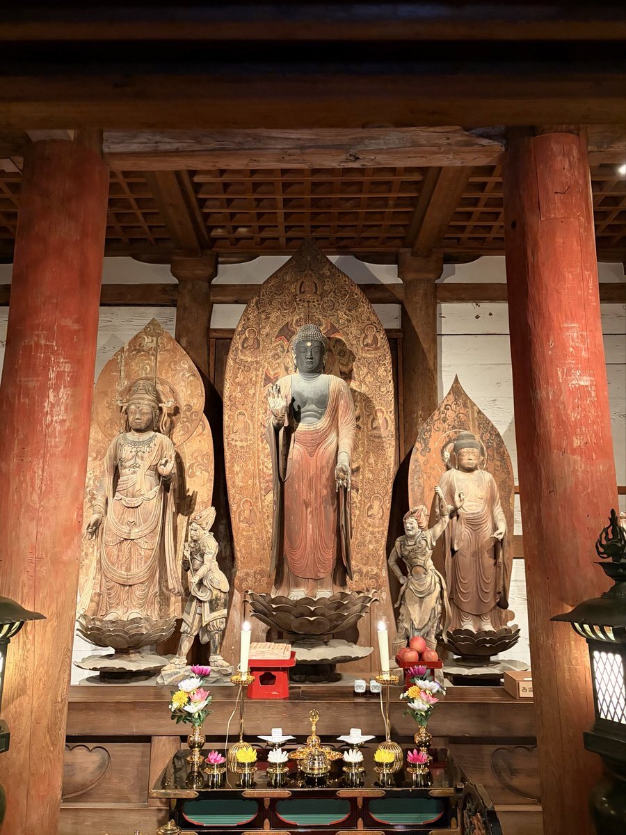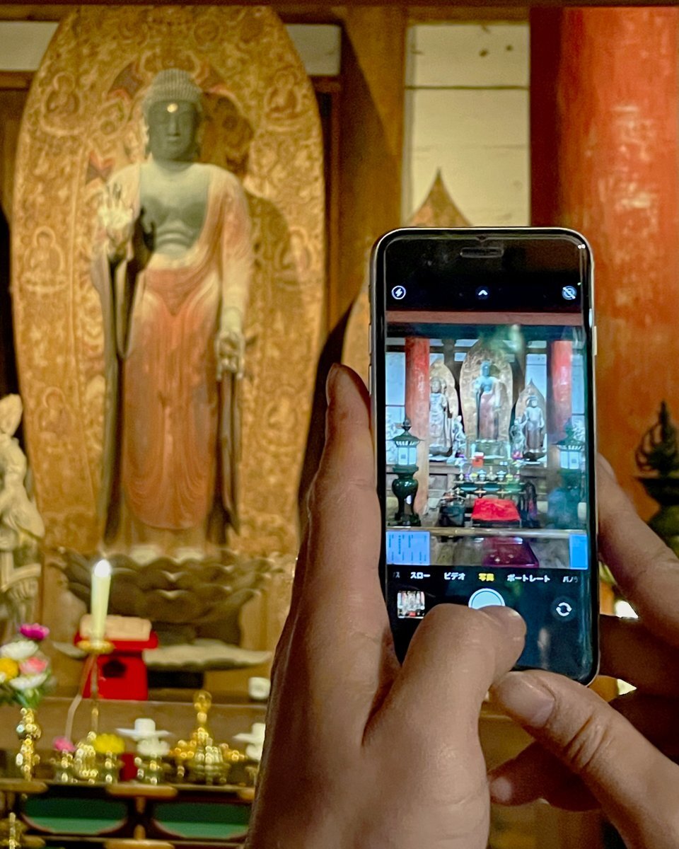 \憧れの国宝仏をスマホでぱちり📷/ #室生寺 (むろうじ)では今、金堂特別拝観を開催中! 通常拝観では立入禁止の外陣(げじん)に入って、仏さまたちをいつもよりぐっと近くで拝観できます。 しかも、スマホ限定で堂内撮影もOKだなんて…嬉しすぎます☺✨ pic.x.com/Z0FZay6qSn