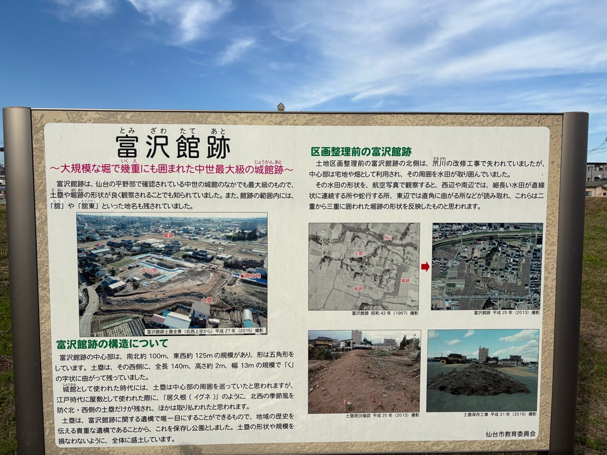 #富沢館】2025年11月5日 仙台平野最大級の中世城館跡。土塁は富沢館跡に関する遺構で唯一目にすることができるものであり、地域の歴史を伝える貴重な遺構であることから、保存。現在は公園となっている。 #陸奥国 #宮城県 (@ 富沢館跡 in #仙台市, 宮城県) pic.x.com/FhFy3kkiZG