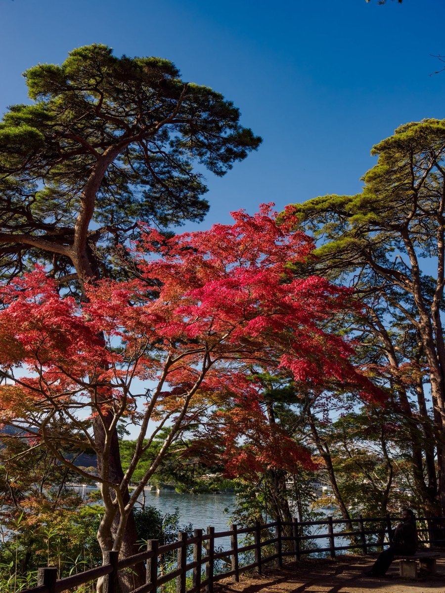 写真に人が入ると一気に雰囲気が変わって好き。景色を味わっている雰囲気や観光地の雰囲気が出る気がする。 #松島 #観光 #宮城県 #福浦橋 #五大堂 #紅葉 pic.x.com/SYryaiC2xV