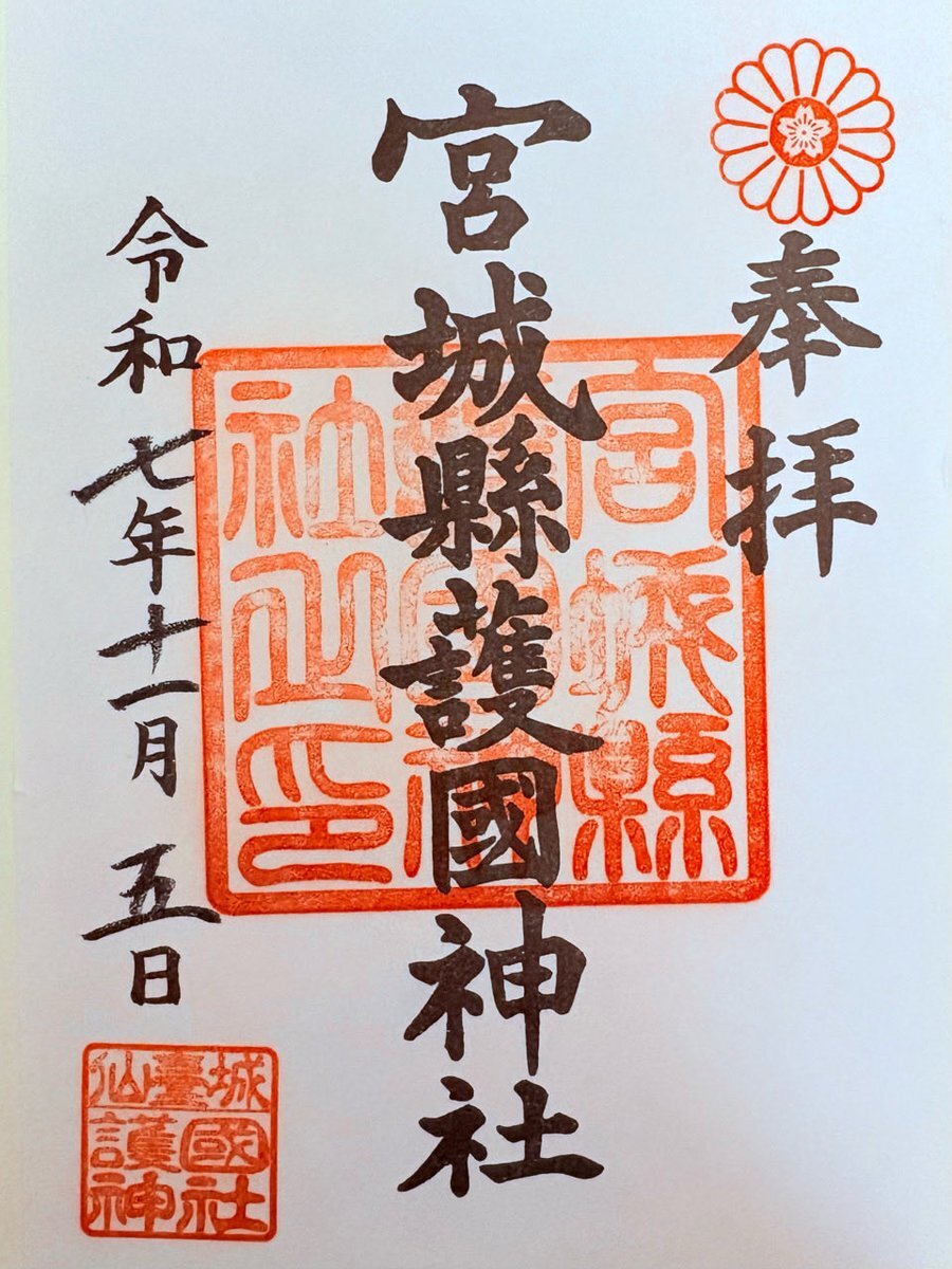 #宮城縣護国神社】2025年11月5日 #仙台城 本丸跡に鎮座し、明治維新以後の国事に殉じた宮城県出身の英霊を祀る神社。明治37(1904)年に創建され、鮮やかな朱色の社殿が杜の緑に映える。 #陸奥国 #宮城県 #日本100名城 #御朱印 (@ 宮城縣護國神社 in #仙台市, 宮城県) pic.x.com/GkLQMTwhUG
