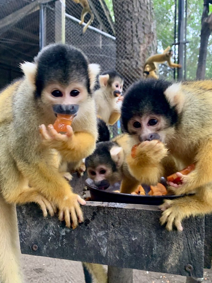 リスザルたちに職員から柿をプレゼント! 想像以上の人気でした! #宮崎市フェニックス自然動物園 #ボリビアリスザル #秋の味覚 #食欲の秋 # pic.x.com/O462OpaNMk