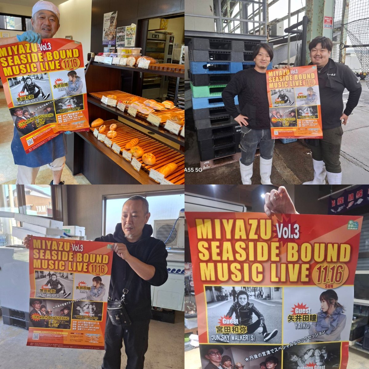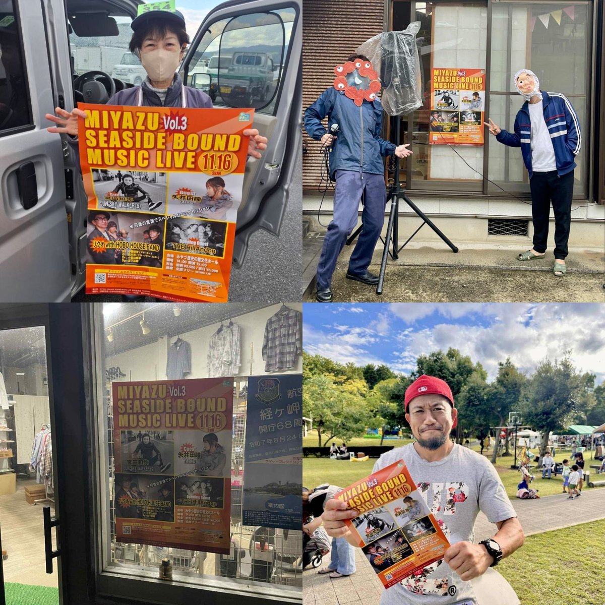 まだまだ頑張ろ!告知広報活動ありがとございます! ①小柴鮮魚店 様 ②ハロウィン仮装パーティーinのむろ様 ③モリヨシ 様 ④青葉山ハーバルビレッジ様 予約受付はこちら!是非!メッセでもtiget.net/events/420238 #リクオwithHOBOHOUSEBAND #宮田和弥 #矢井田瞳 #TheHillandon #MSBML2025 pic.x.com/4S0XTfUKXg
