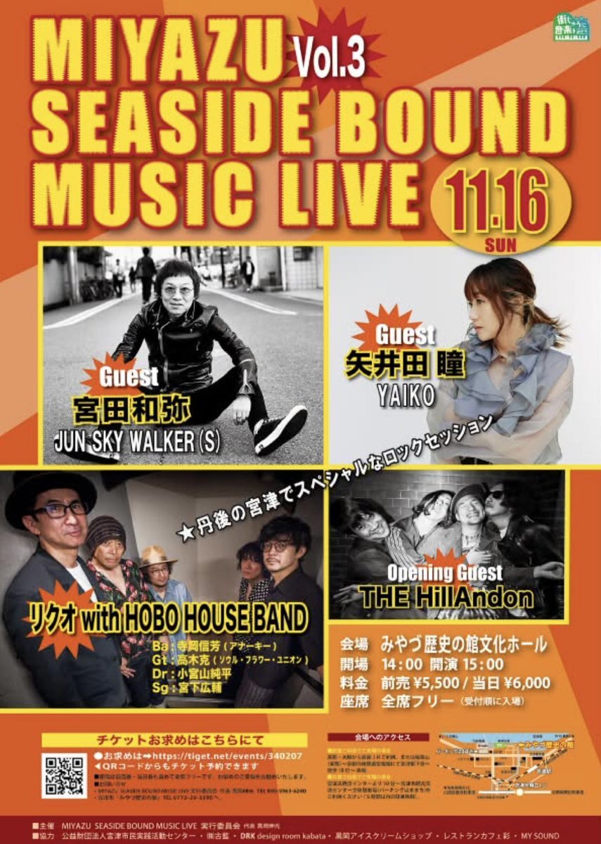 拡散希望!! 皆さんのお越しをお待ちしております🙏 一緒に会場で盛り上がりましょう!!! ライブの前に天橋立観光も出来ますよ!! カニも解禁になってますし 是非お越しくださいませ😊 #リクオ #宮田和弥 #矢井田瞳 #THEHilAndon #リクオwithHOBOHOUSEBAND #みやづ歴史の館 pic.x.com/0iltKg2N59