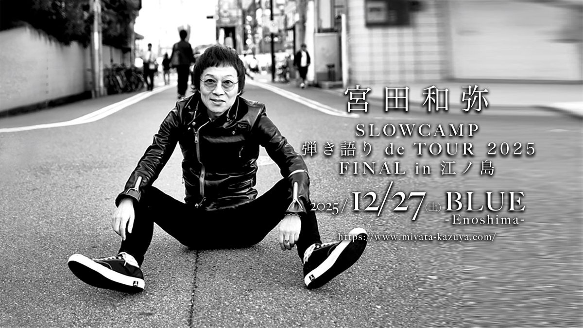 #宮田和弥 SLOWCAMP 弾き語り de TOUR 2025 FINAL in 江ノ島 12.27(土) 神奈川 BLUE Enoshima 一般発売開始‼️ eplus.jp/sf/detail/4405… #ジュンスカ #JUNSKYWALKERS pic.x.com/h6wYpqepJm