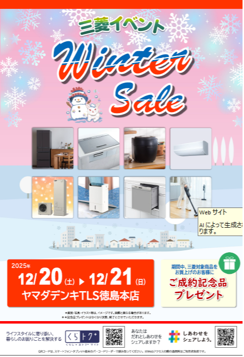 / #Tecc_LIFE_SELECT徳島本店 限定✨ #三菱 イベントを開催いたします📣 \ 12/20(土)▶▶12/21(日) 期間中、対象商品をお買上のお客様に ご成約記念品プレゼント🥳🎉 年内最後の三菱イベント!💫 ぜひご来店お待ちしております🙌✨ #ヤマダ #家具 #リフォーム #家電 #インテリア pic.x.com/4nDl7FEiFL