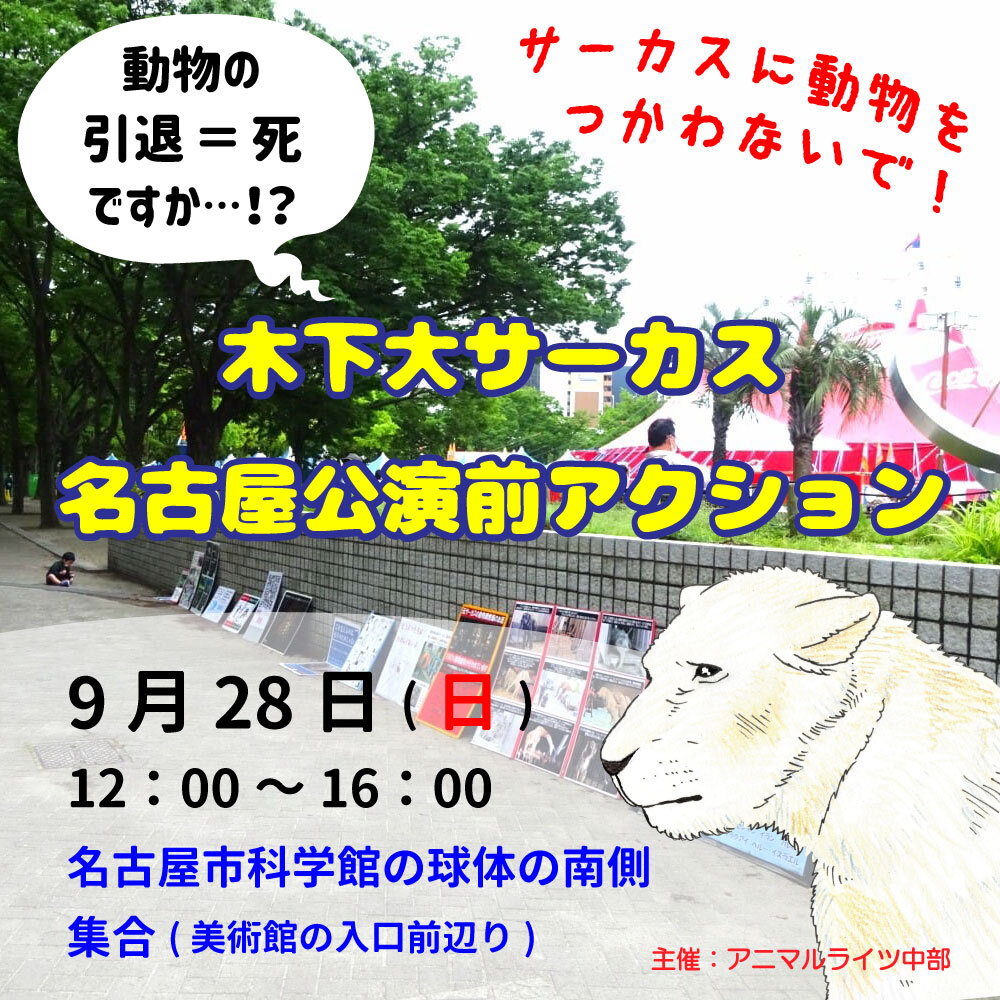 ようやく暑さも和らいできましたね🙌 🎪9月のアクションのお知らせです✨ >【名古屋★参加者募集中】サーカスに動物はいらないよ!木下サーカス前アクション☆彡 2025年9月 #動物サーカス反対 - アニマルライツ中部 archubu.hatenablog.com/entry/2025/09/…