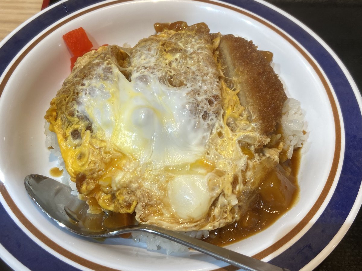 今日、富士そばで食べたカレーかつ丼 店舗や作る人によるんだろうけど、頼んだことを後悔するレベルでカレーが少なかった。大人しく蕎麦食ってりゃよかった てかカレーかつ丼ってご飯の上にカレーかけてその上にかつ煮だっけ? なんにせよカレー少なすぎ!スープはアホみたいにからい #富士そば pic.x.com/7pT2kdlVUT