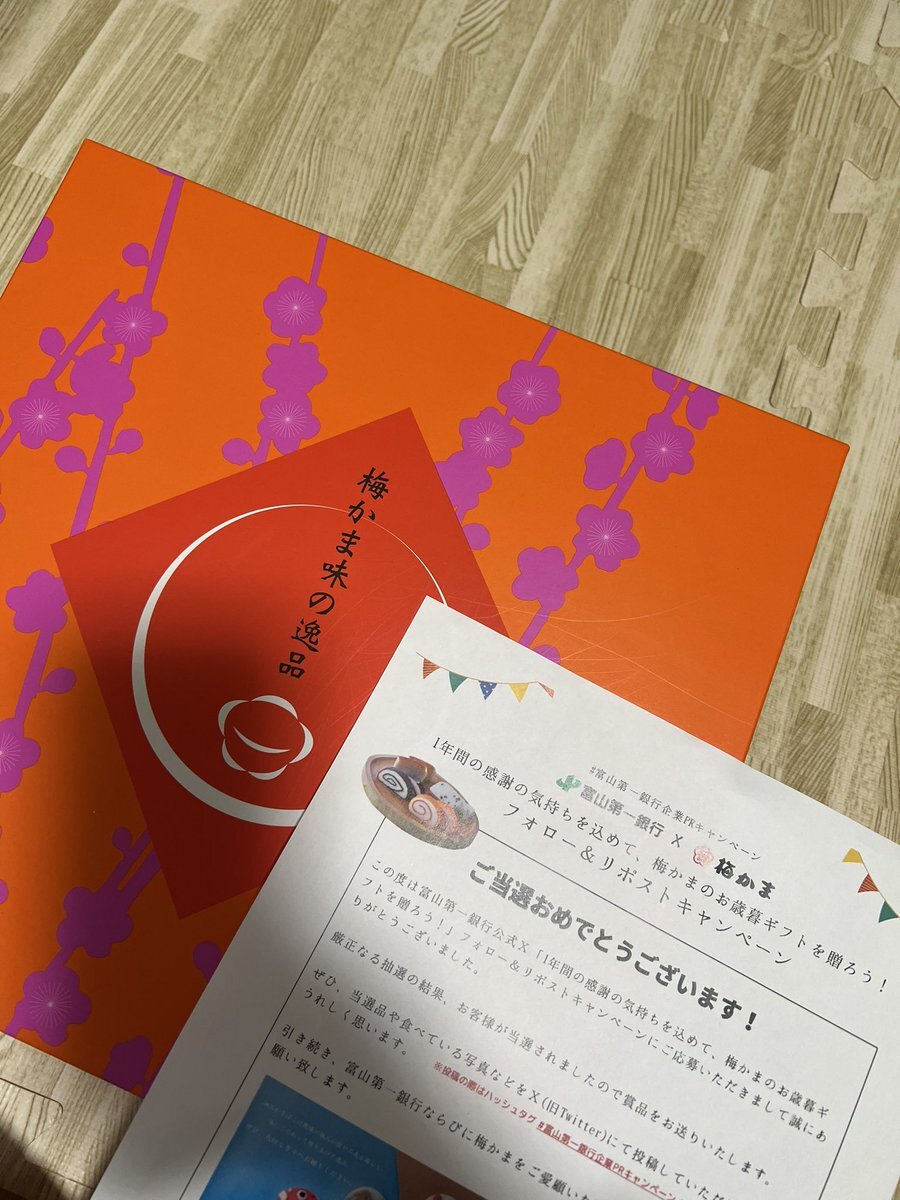 🌼富山第一銀行様×梅かま様🌼 とても素敵なお歳暮ギフトの当選ありがとうございます😭🤍✨✨ 見た目からとても美味しそうですごく嬉しいです!!! ぜひみんなで食べさせていただきます。 本当にありがとうございました✨🙏🤍 #富山第一銀行企業PRキャンペーン #富山第一銀行 #梅かま pic.x.com/lfwadTuxOh