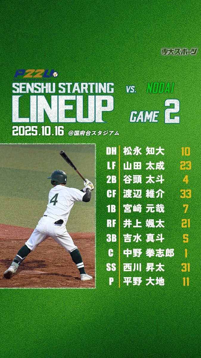 #東都大学野球 二部春季リーグ⏪ vs. #東農大 2回戦 本日のスタメン👀 #プレユニ22 #専修大学 #Go神宮 pic.x.com/a4QqyuowgJ