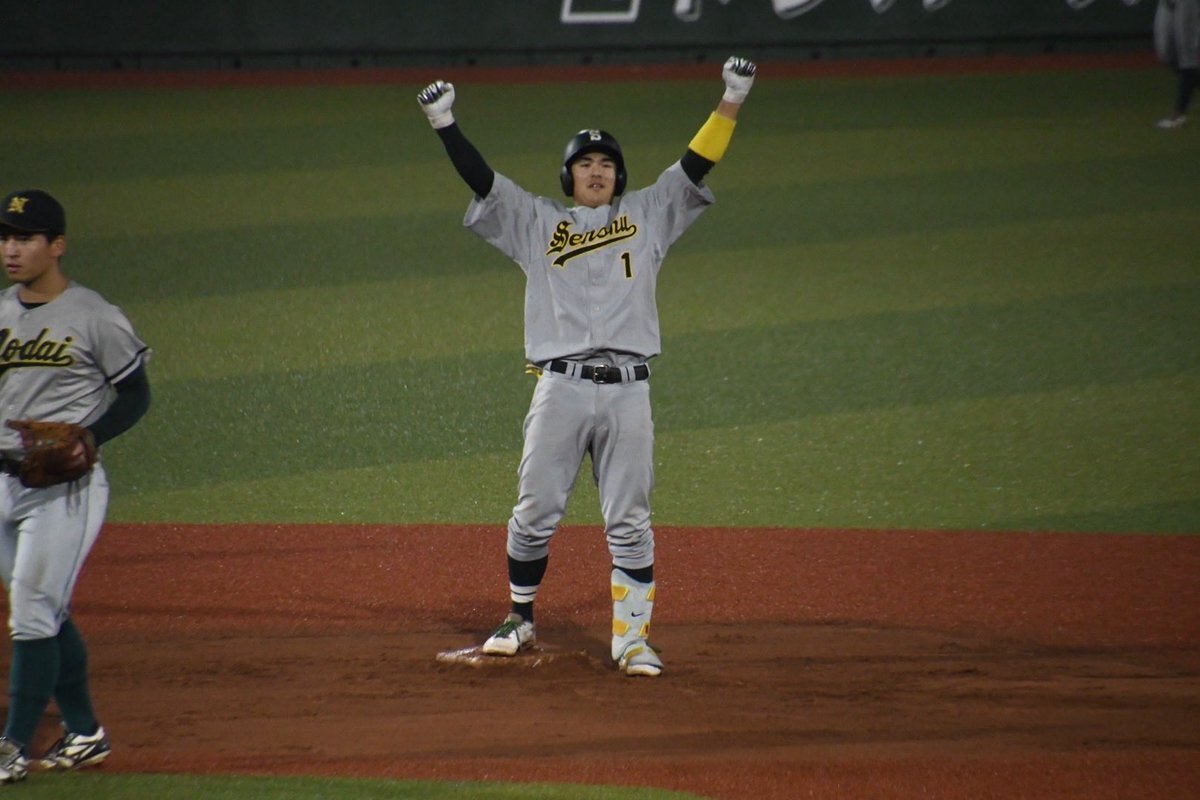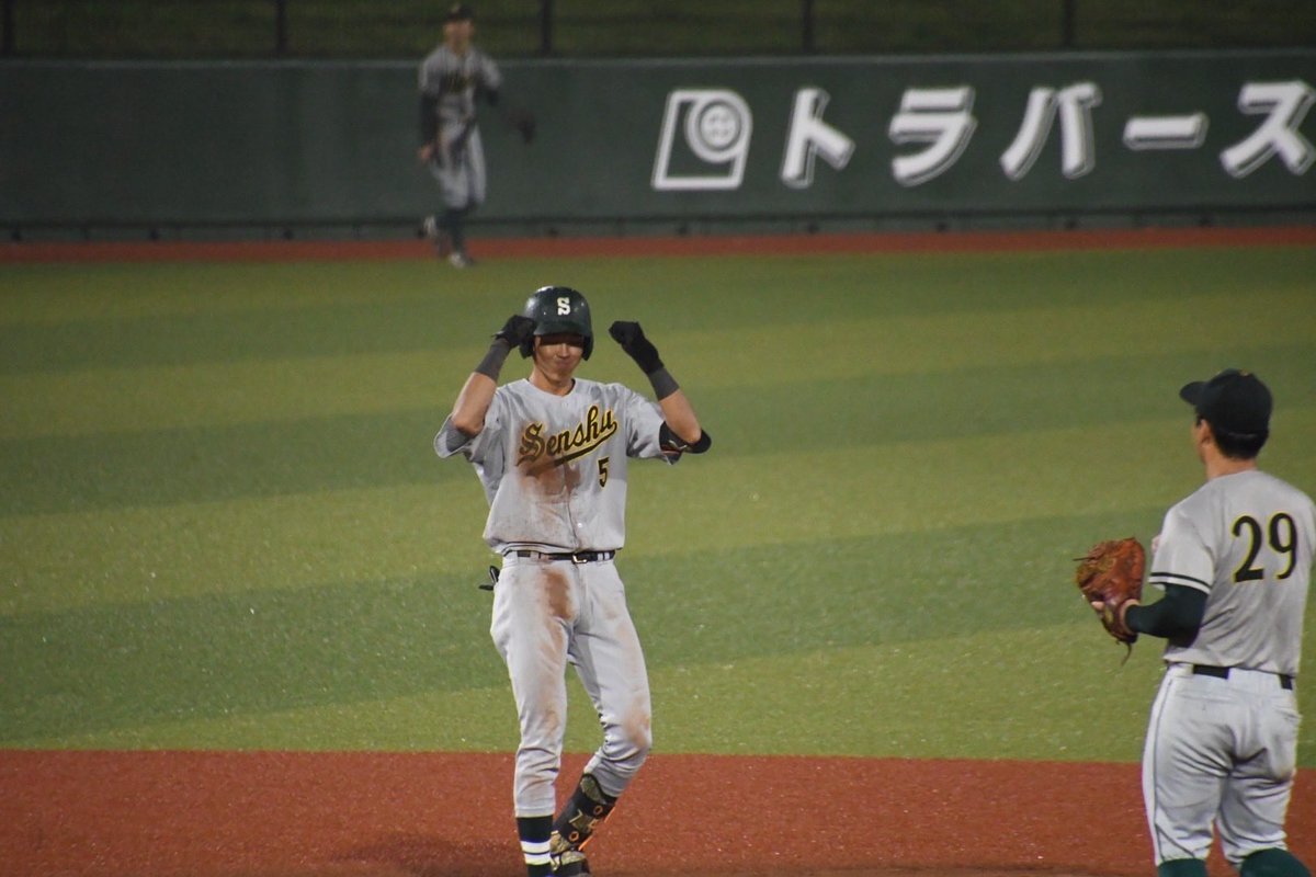 #東都大学野球 二部秋季リーグ⏪ 【回裏】 #専大 8-6  #東農大 8番 #中野拳志郎 (文4・小浜高)のタイムリー2ベースで1点差に迫る‼️ 1番 #松永知大 (経済4・創成館高)の3ランで逆転しました🔥 #プレユニ22 #専修大学 #Go神宮 pic.x.com/Co8714B61q