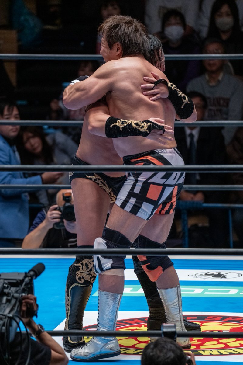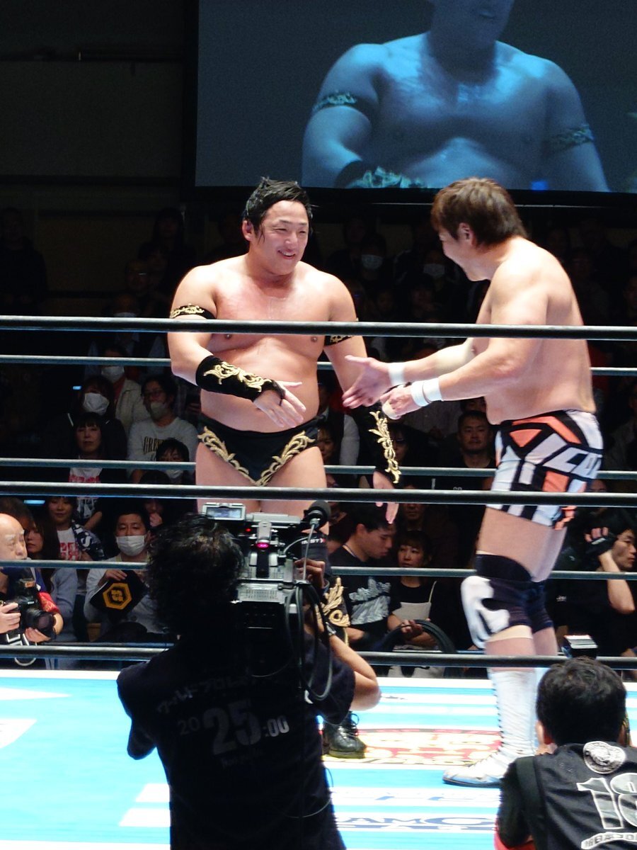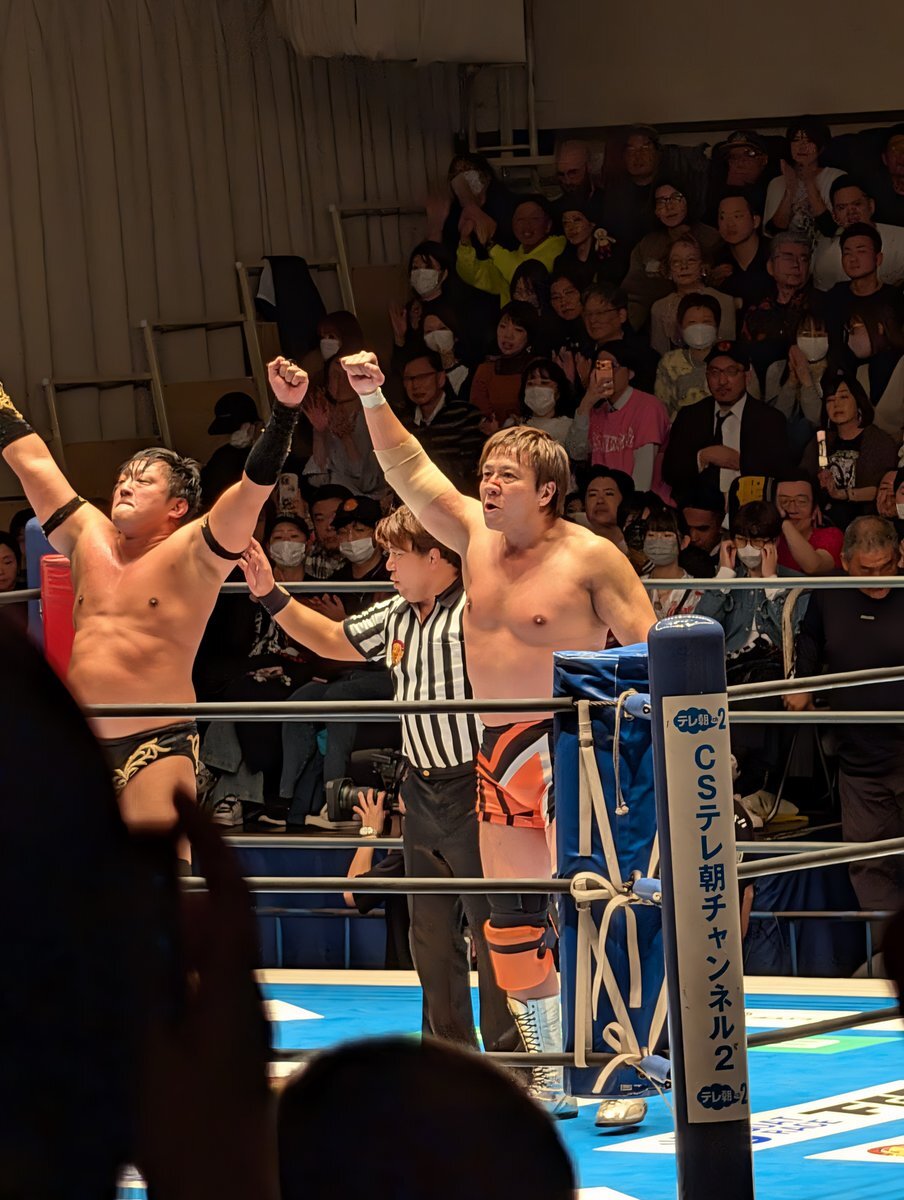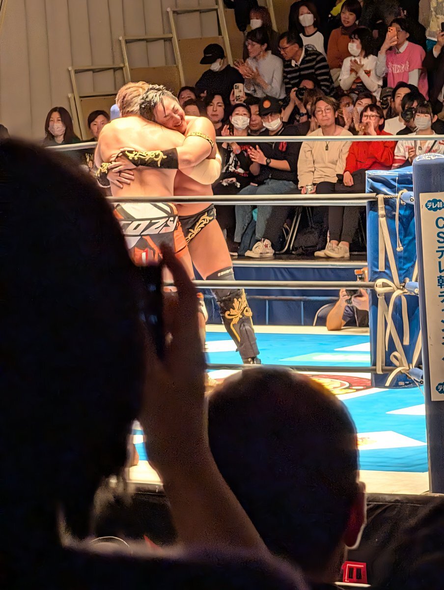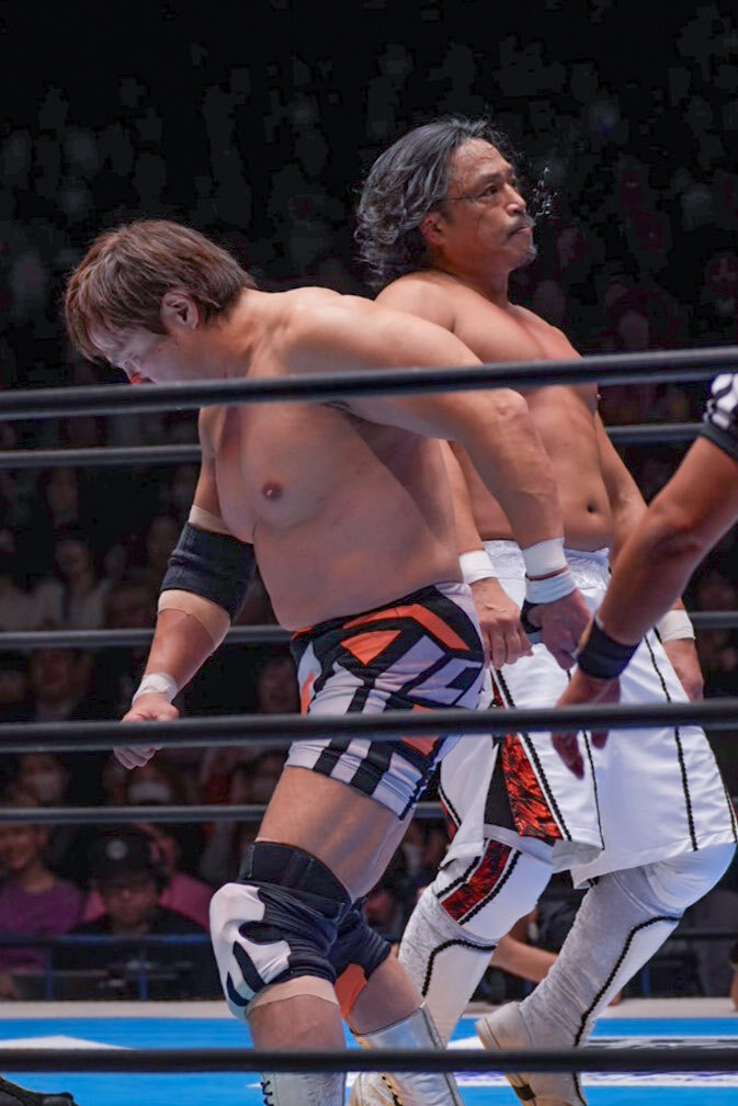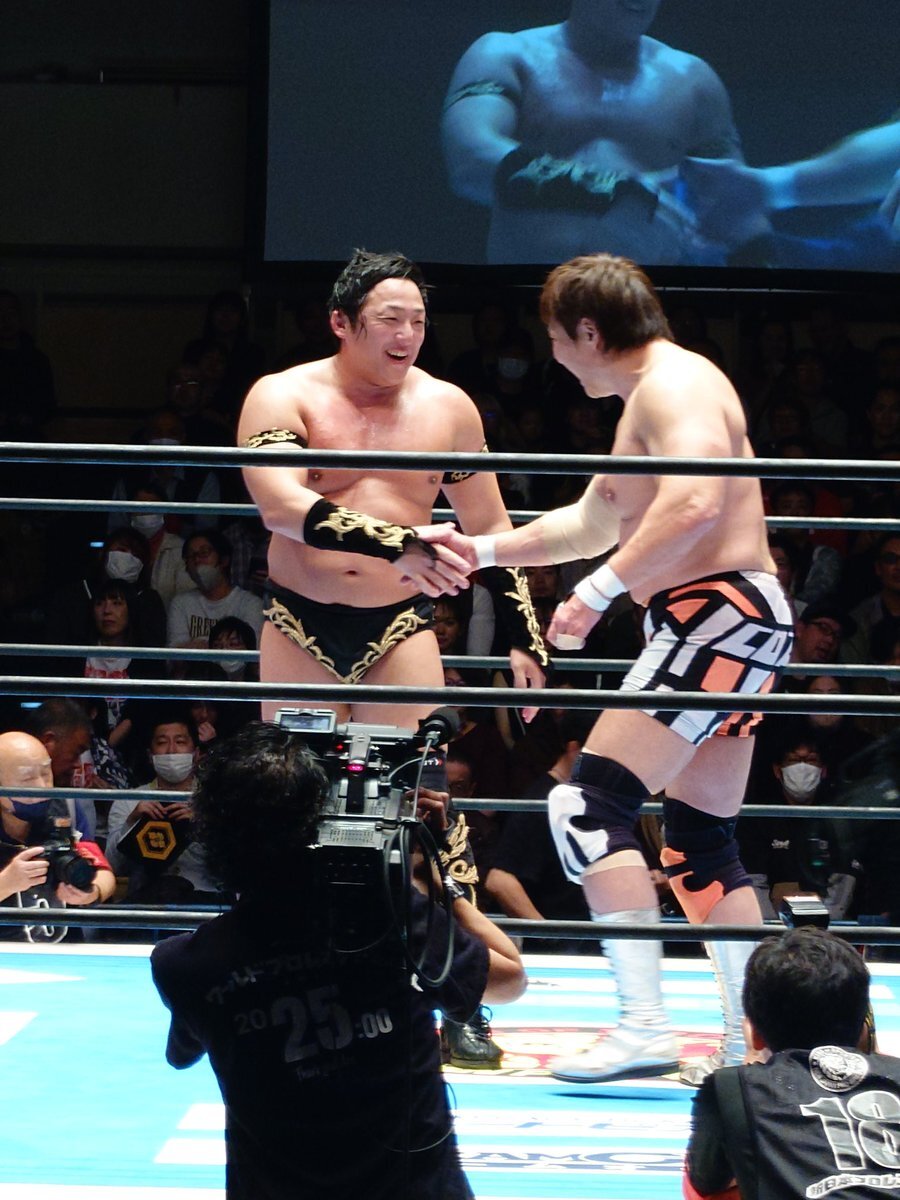 サンドイッチ砲はロマンだよなぁ… タイミングドンピシャなのは流石 ベテランコンビだわ…(´・ω・`) #小島聡 x.com/cozy_lariat/st…