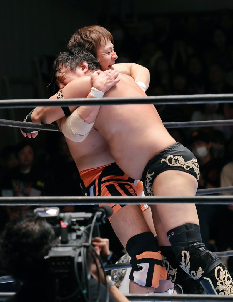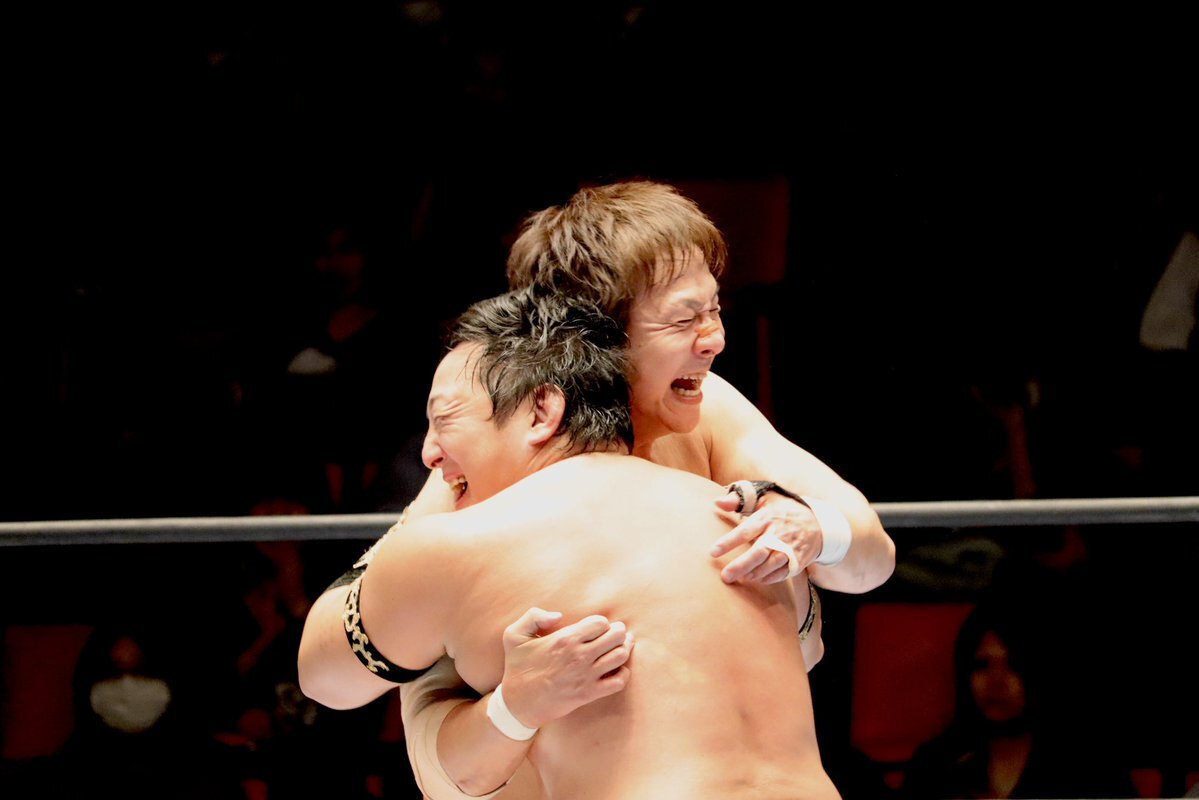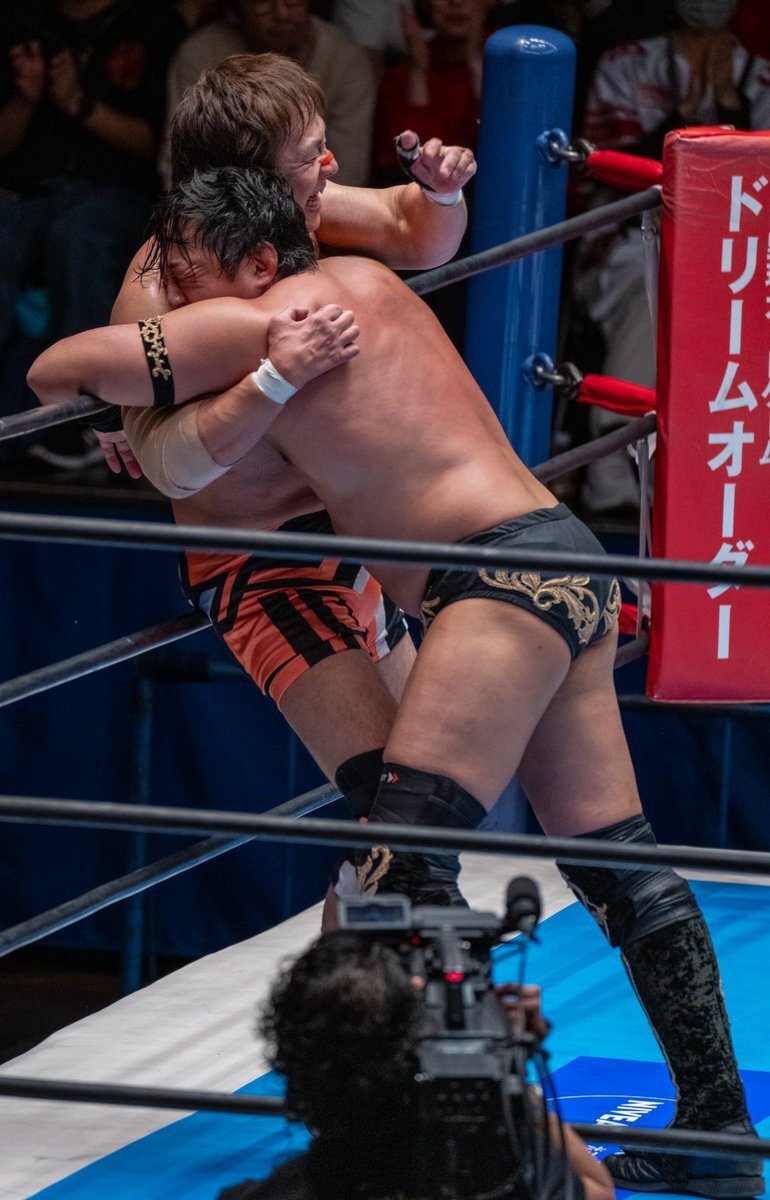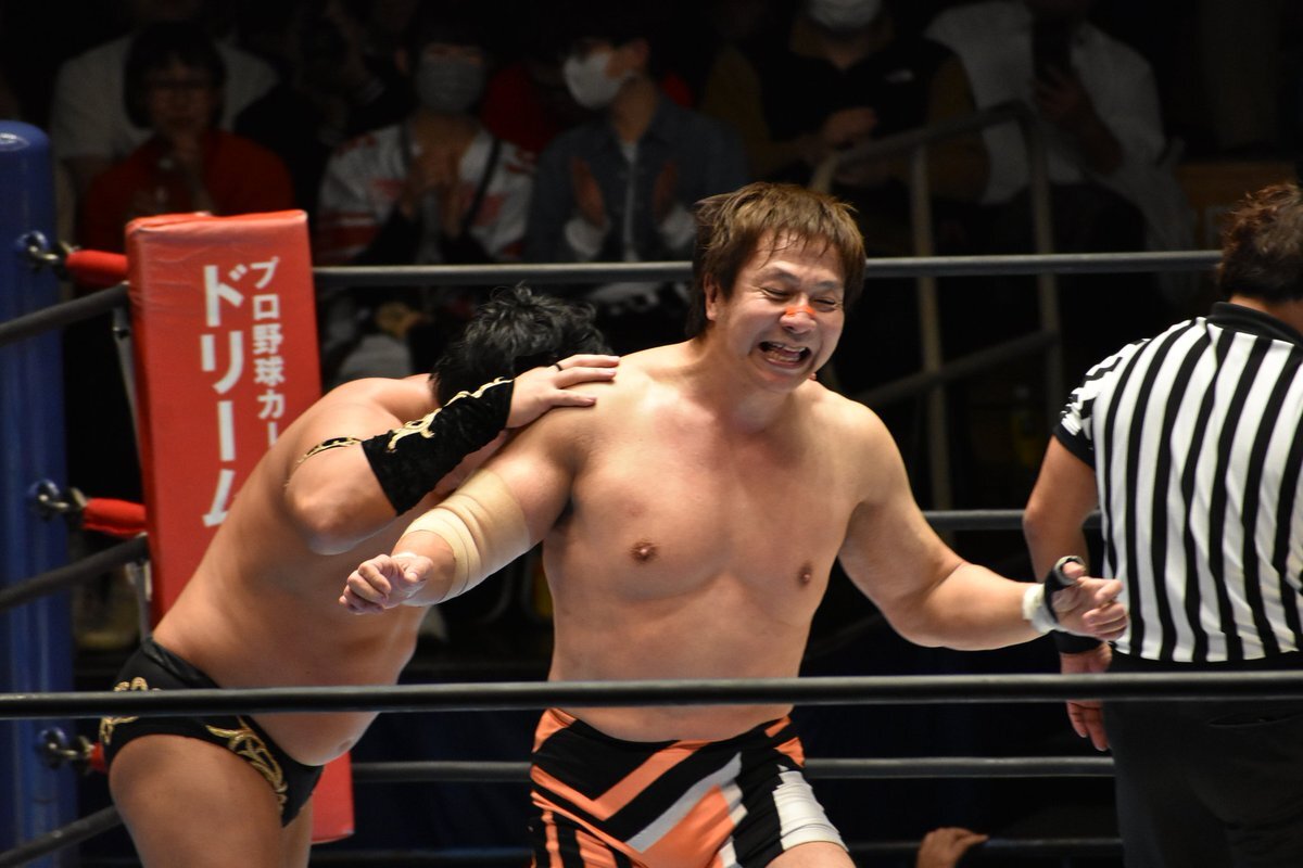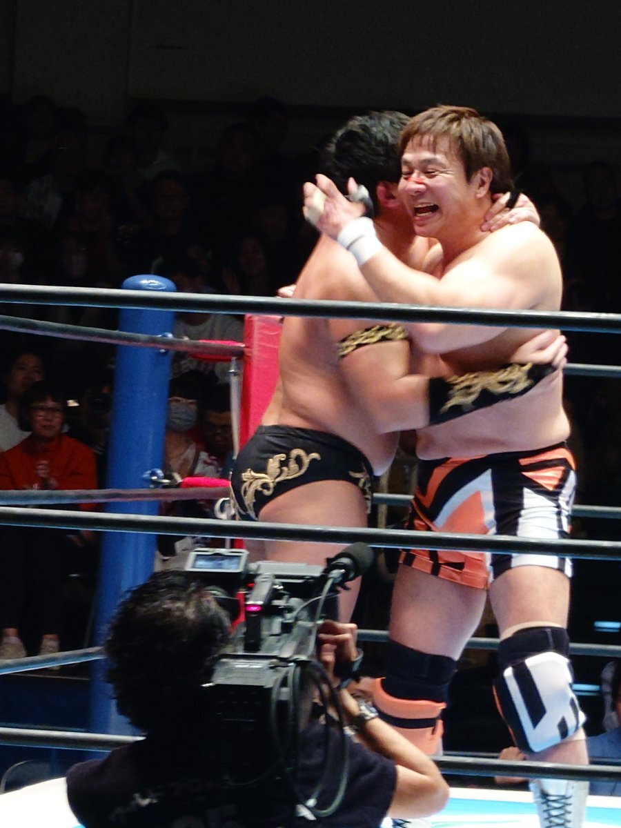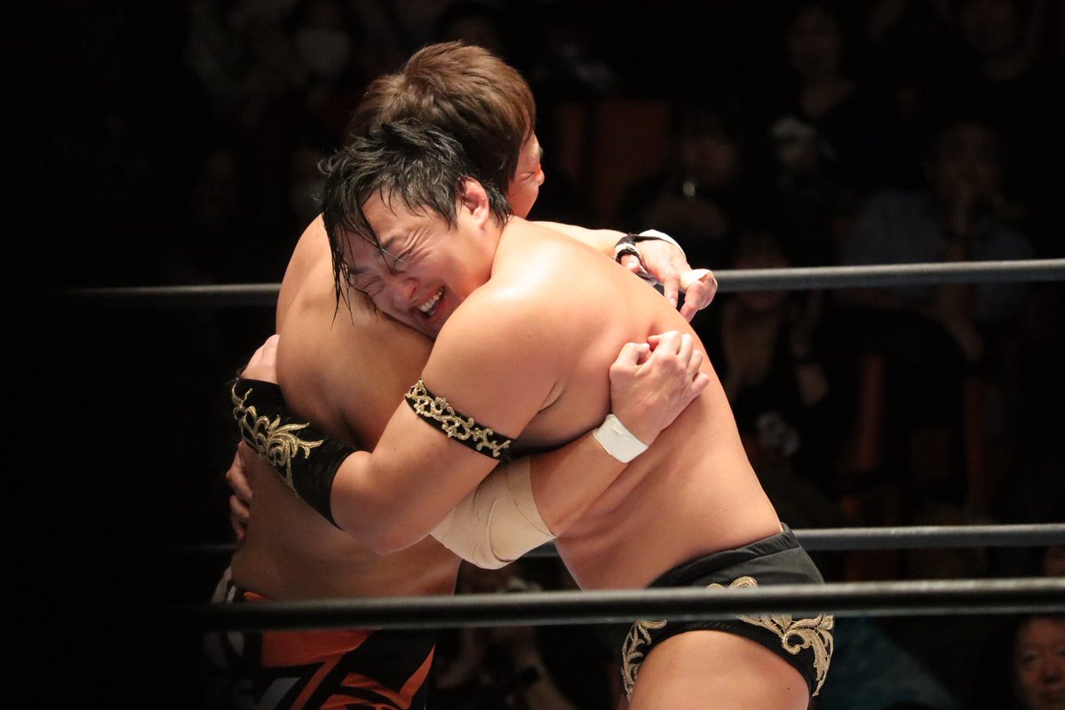 サンドイッチ砲はロマンだよなぁ… タイミングドンピシャなのは流石 ベテランコンビだわ…(´・ω・`) #小島聡 x.com/cozy_lariat/st…