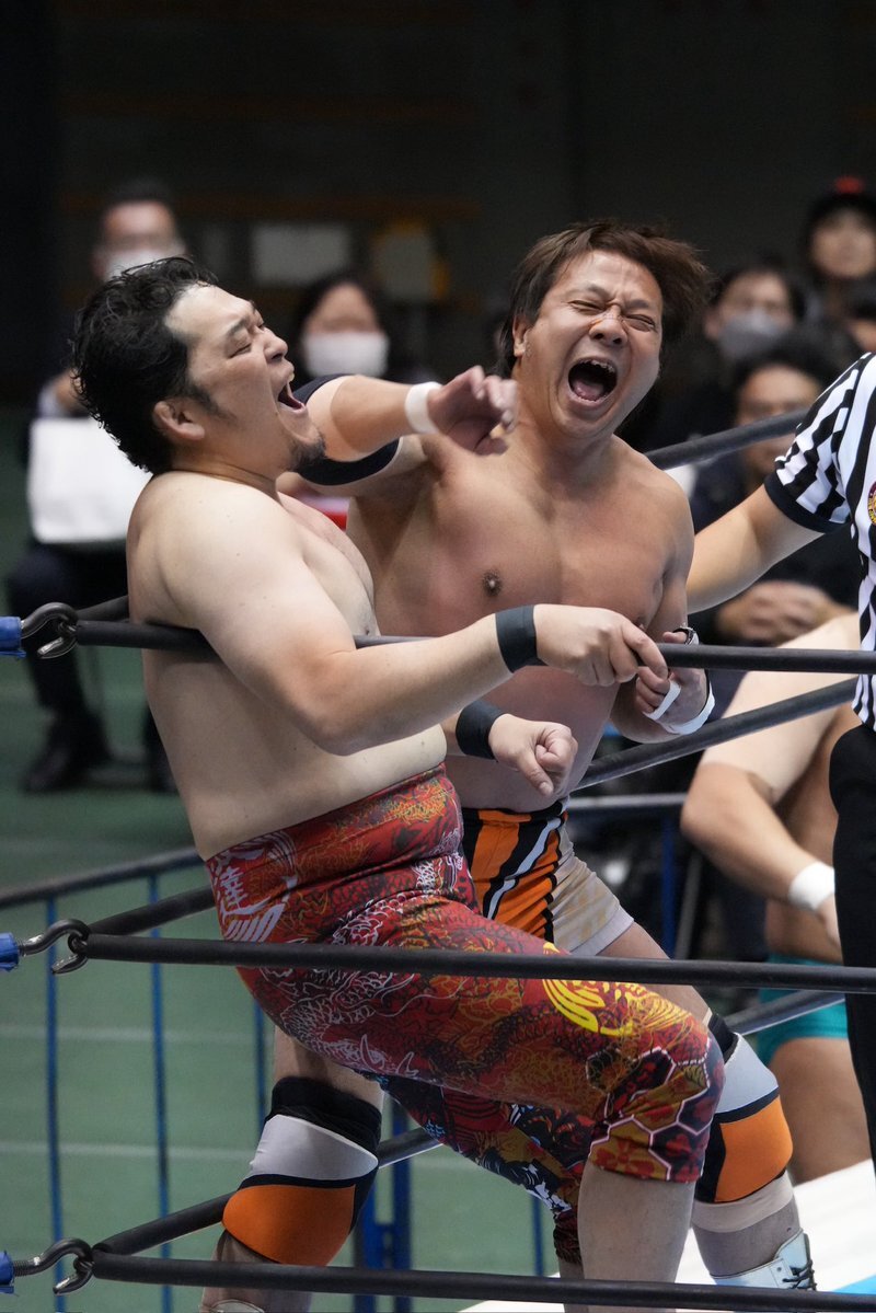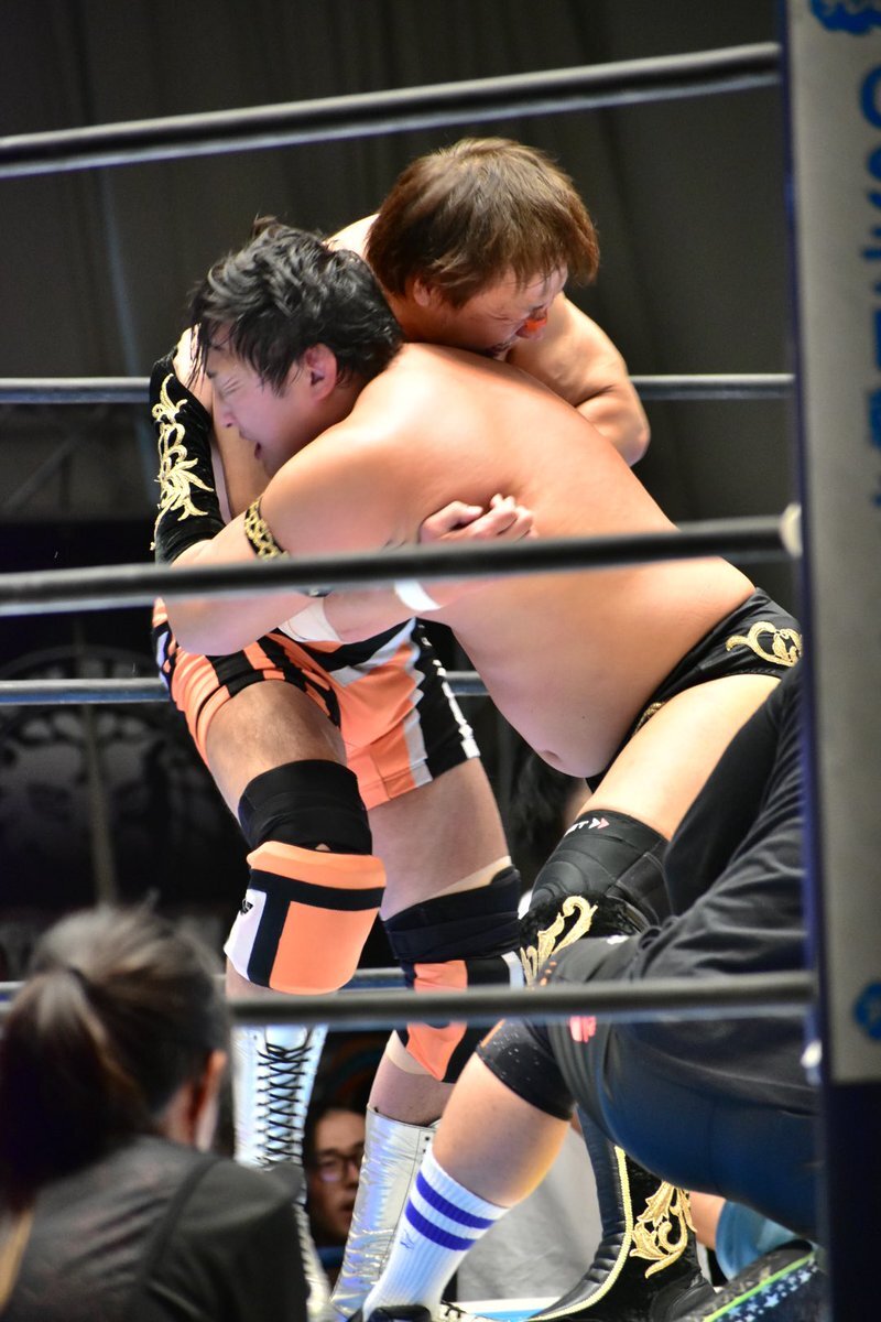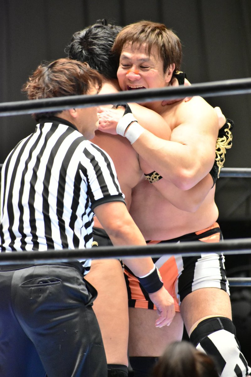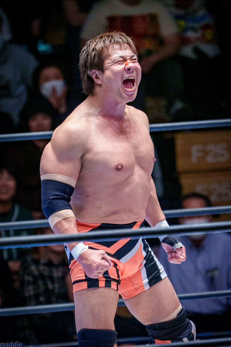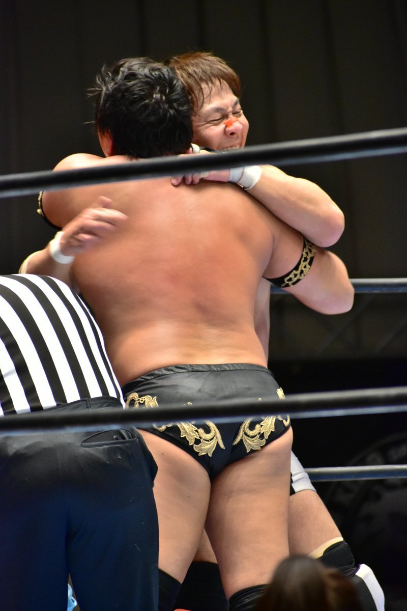 昨日の試合を回顧してます。 個人的ハイライトは、この「ラリアット&アックスボンバーの同時発射」です。 狙ったものではなく、偶然。 というか「私のラリアットにタイチが上手くタイミングを合わせてくれた」が正解。 タイチのプロレス脳に脱帽。 本当に凄いプロレスラーだと思う。 #njwtl