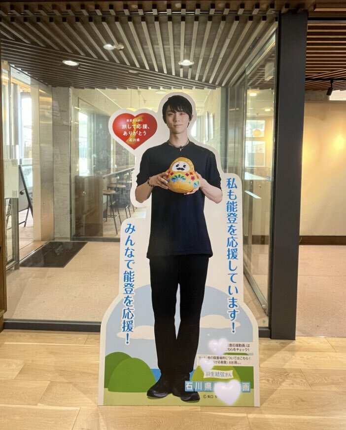 #小松駅 #小松市観光案内所 #羽生結弦 選手 #旅して応援 #石川県応援企画 #のと活 #みんなで能登を応援 温かい光の中で(お天気に恵まれて良かった☺️)羽生選手が優しく迎えて下さいました💝🪽 pic.x.com/9nv7yu9eAw