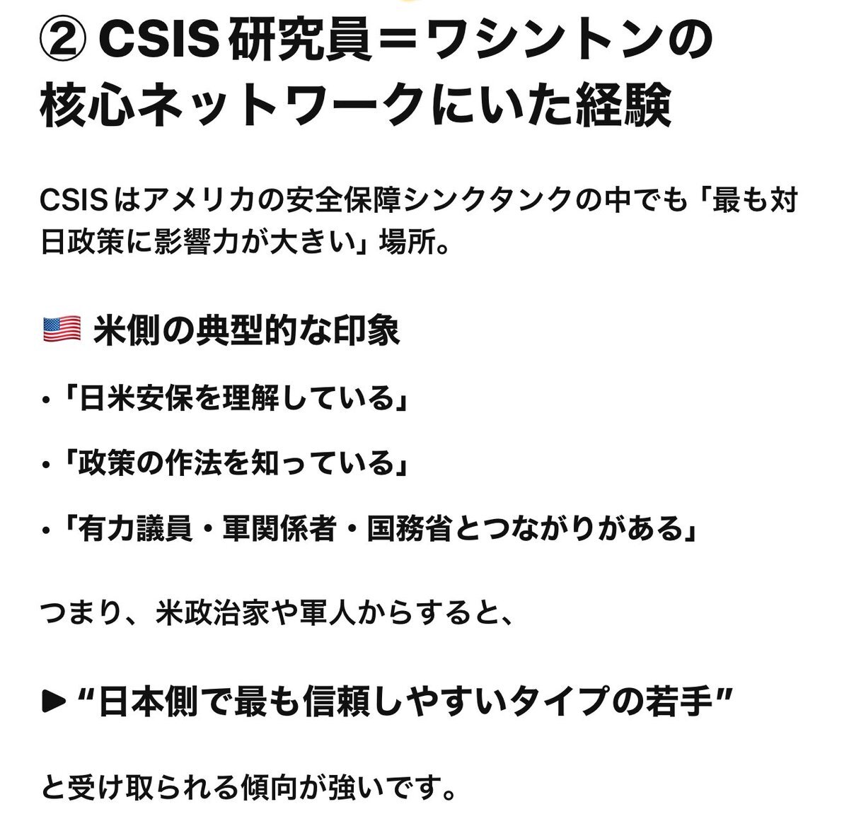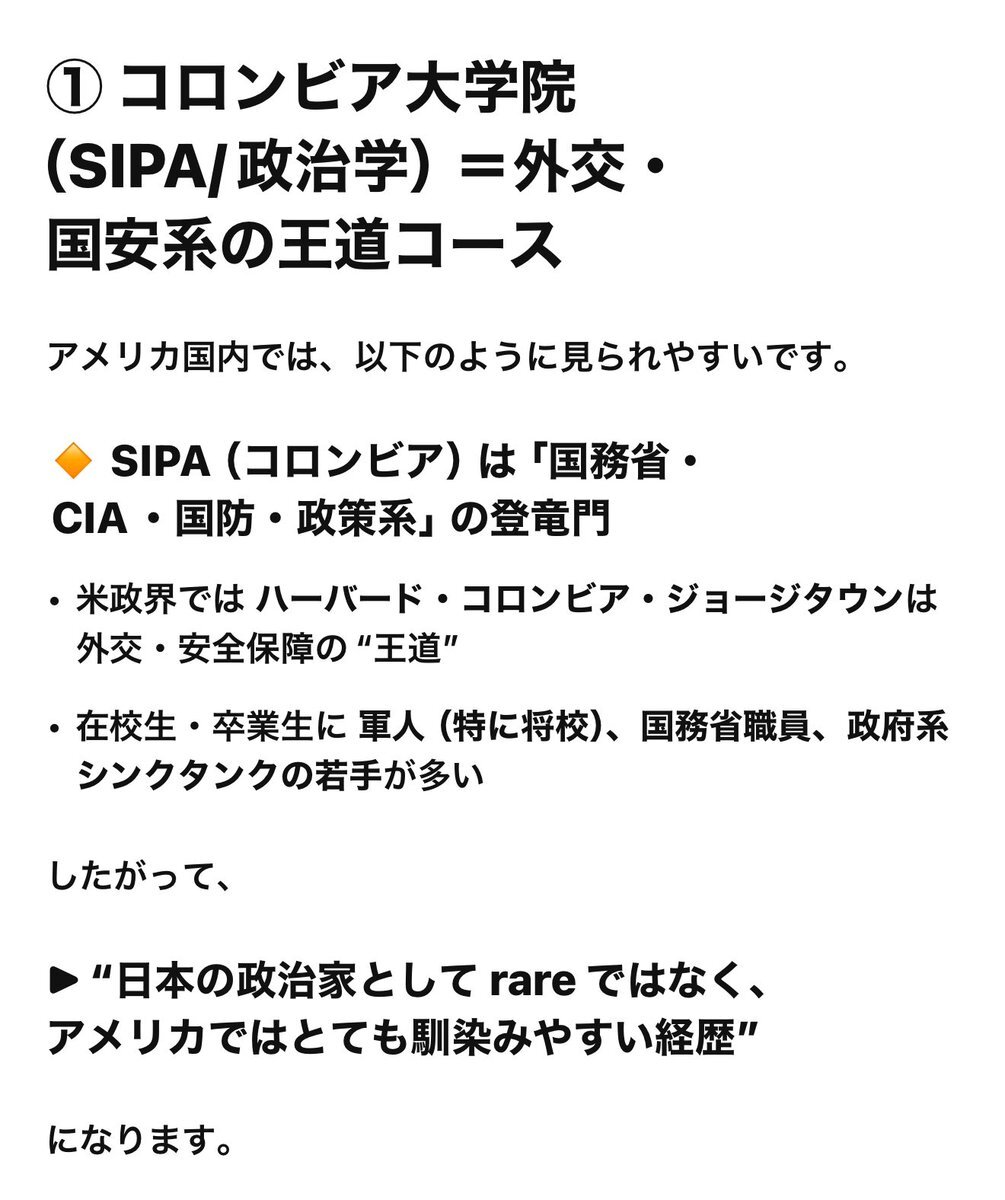 小泉進次郎さんのコロンビア大学院政治学部卒業とCSIS研究員の経歴は米国政治・軍関係者にどう映るかとchatGPT5.1に聞いてみたら凄かった。 #小泉進次郎 pic.x.com/A1TqmXWDBu