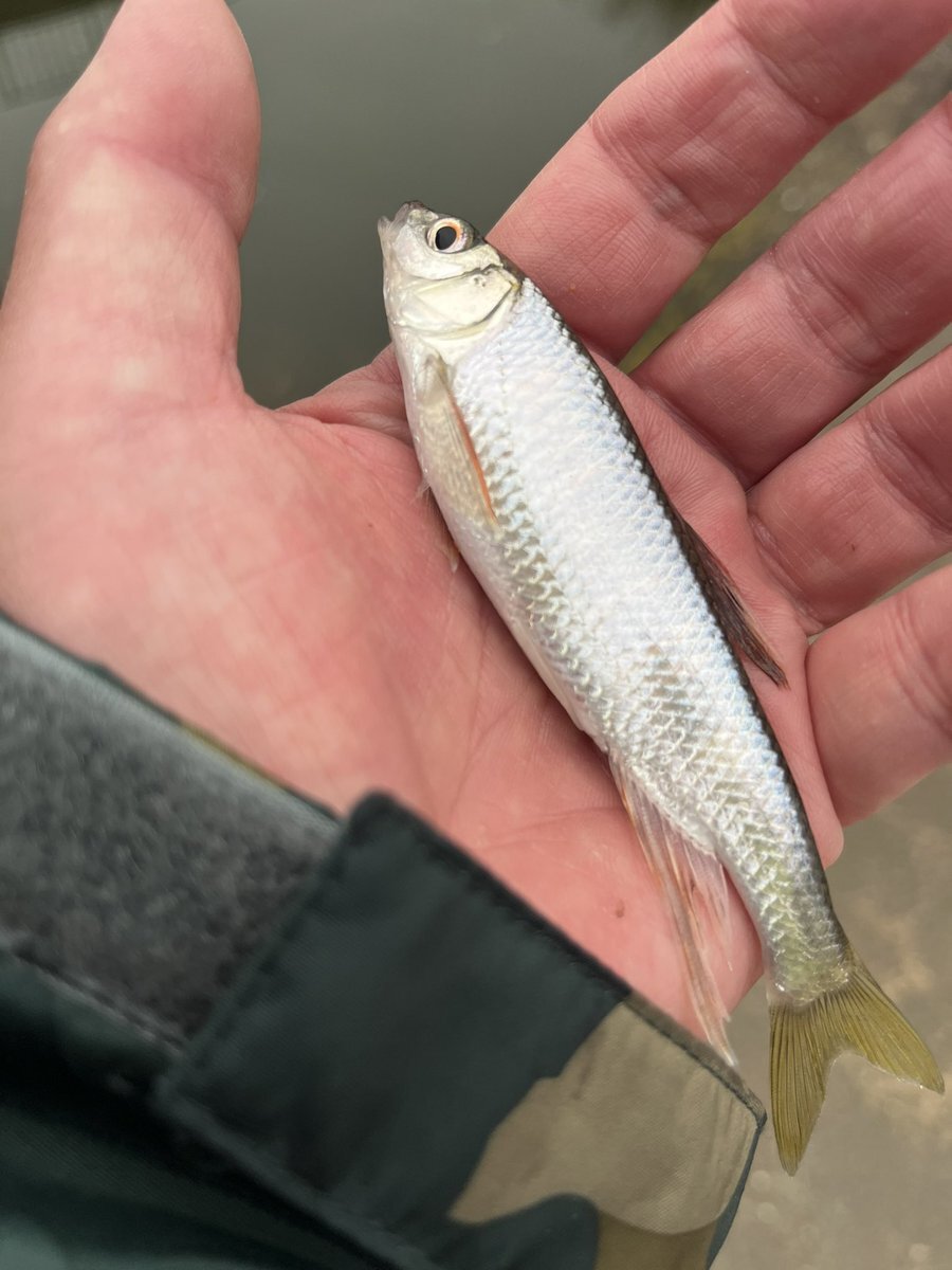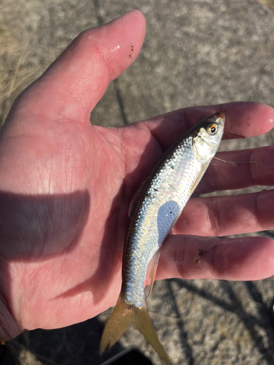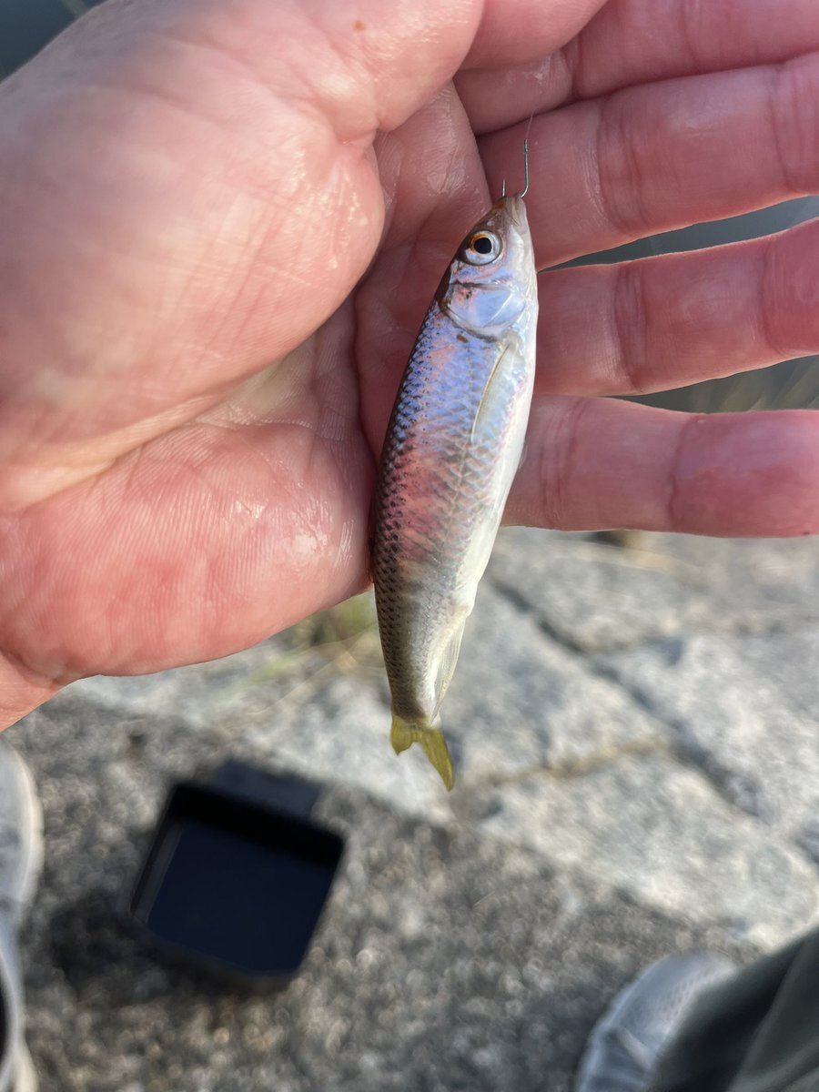 11月15日(土) 13時から15時半までの大和川釣行 オイカワ14匹 スゴモロコ5〜7匹 タモロコ1匹 オイカワ最大14㌢ 写真は最後に釣れたやつ笑 まだまだ修行が必要やな😟 #大和川 #オイカワ #柏原市 #小物釣り #全日本オイカワ振興協会 pic.x.com/7wOHumxMWO