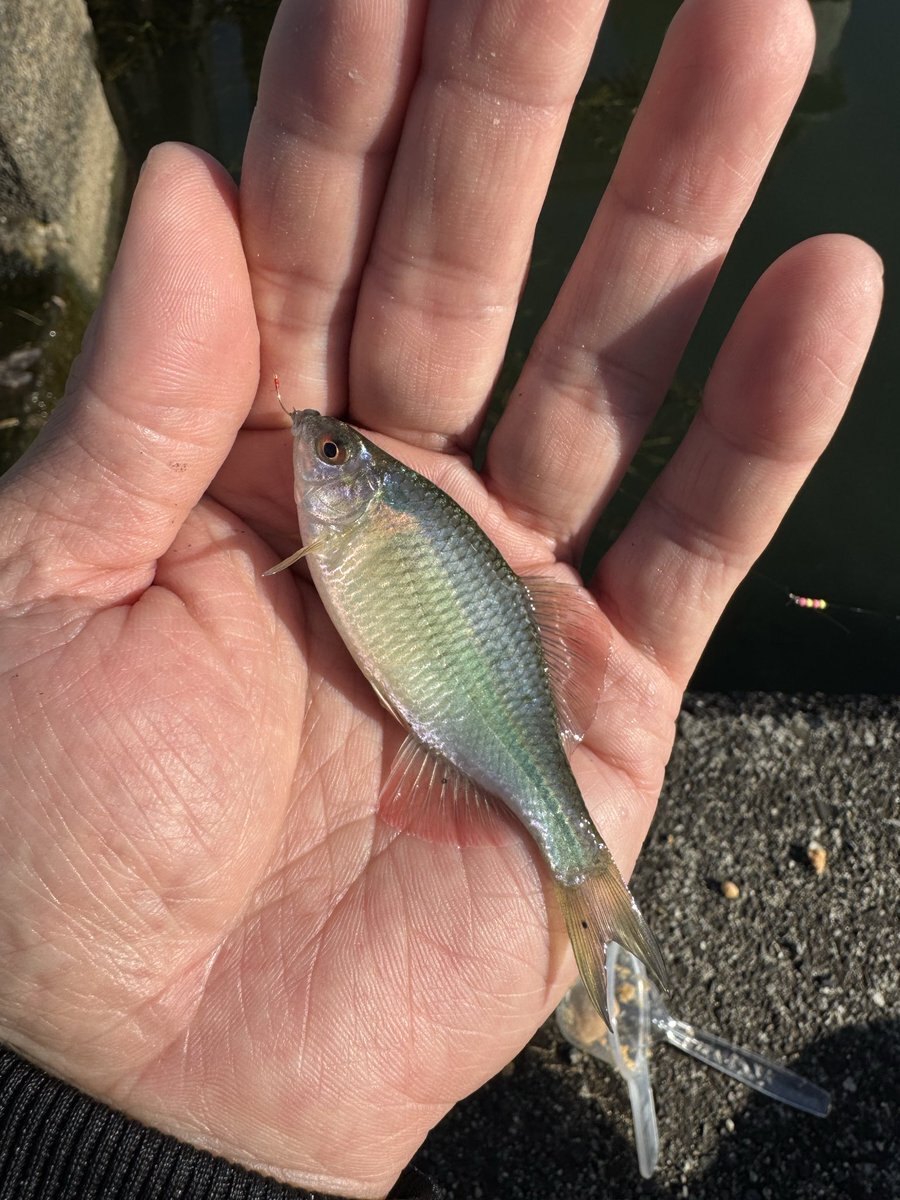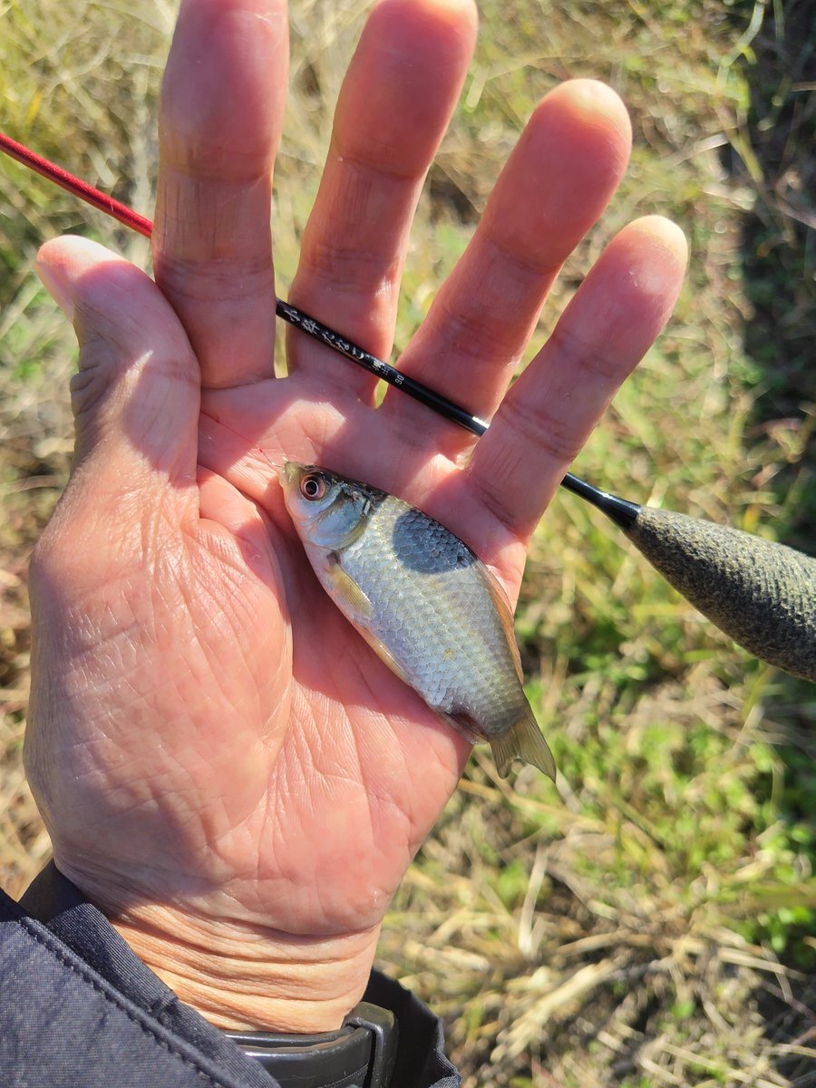 場所を移してもうひと釣り。油膜ギラギラですが、魚はちゃんと食ってきました。こっちの方が、少しだけマトモなサイズ釣れるみたい。秋はあちこちに魚が居て楽しいな〜 #タナゴ釣り #小物釣り pic.x.com/AMHREd0jFQ