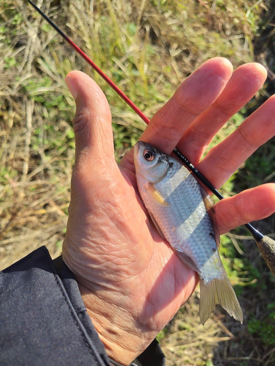 #釣り #小物釣り 朝活 水路ではうきが動かないので場所移動 気温は低いけど風がなく太陽の暖かさを感じました 1時間半の釣行、ちびくん数引き pic.x.com/Oj2fI30K3T