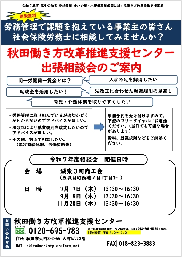 出張相談会を開催いたします。 パートやアルバイトでも従業員が一人でもいる事業所は労働基準法の適用があります。 小規模事業者であっても相談可能ですのでこの機会にご相談ください。 日時:11月20日(木)13:30~16:30 場所:湖東3町商工会 #無料相談 #小規模事業者 #労務管理 pic.x.com/i7IMbA4lhu