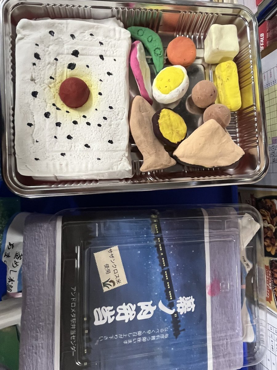 🌟銀河鉄道🌟車内販売のお知らせ 🟣幕の内弁当🍱 🟣釜飯🥢 🟣ケンタウロスラムネ✨ 🟣銀河キャンディ🍬🍬 代金についてはご乗車された際に販売員にお問い合わせください 劇団ひの『銀河鉄道の恋人たち』稽古場公演でぜひこれら本物をそっくり⁉️小道具をご覧ください😃 #小道具 #銀河鉄道の夜 #駅弁 pic.x.com/409TbcG4iD