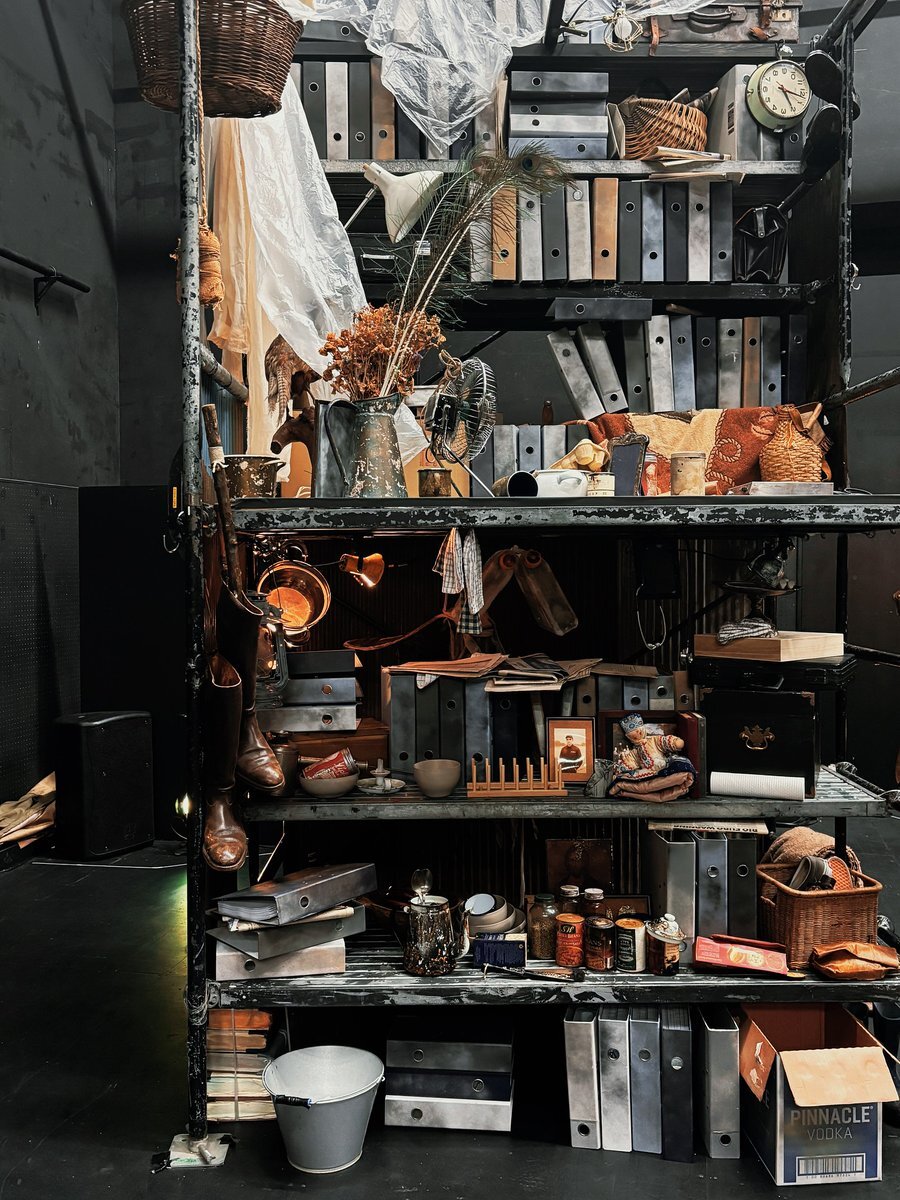 舞台「ヘヴンアイズ」 世界を表すための大量の小道具たち、 本当にすごいです、倉庫が一層倉庫になっていました🪏 愛おしい筏を真上から撮りそびれたことだけ心残り.. #ヘヴンアイズ #エリン #舞台 #小道具 #触覚模型 #ボロボロの屋根 #剥き出しになった梁 pic.x.com/xwpQqK1wFh