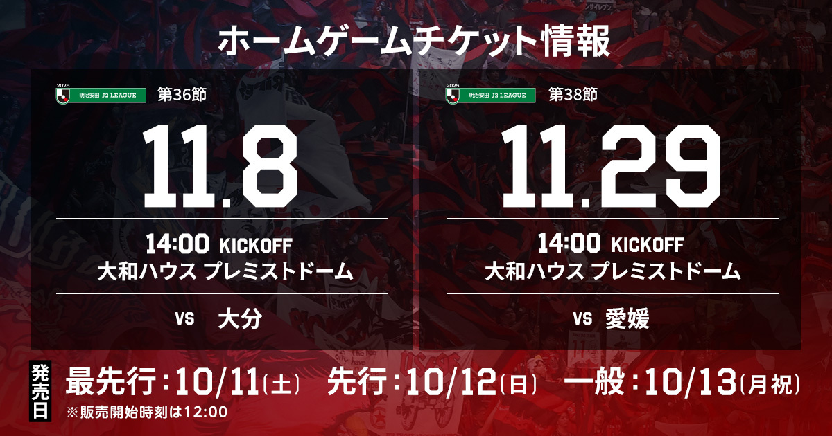 🟥11月ホームゲームチケット発売情報⬛ リーグ最終戦となる11/29(土)愛媛戦を含むチケットが発売! 🎫最先行:10/11(土)12時 🎫先行:10/12(日)12時 🎫一般:10/13(月)12時 11/8(土)大分戦詳細⏬ consadole-sapporo.jp/news/2025/10/1… 11/29(土)愛媛戦詳細⏬ consadole-sapporo.jp/news/2025/10/1… #consadole #コンサドーレ