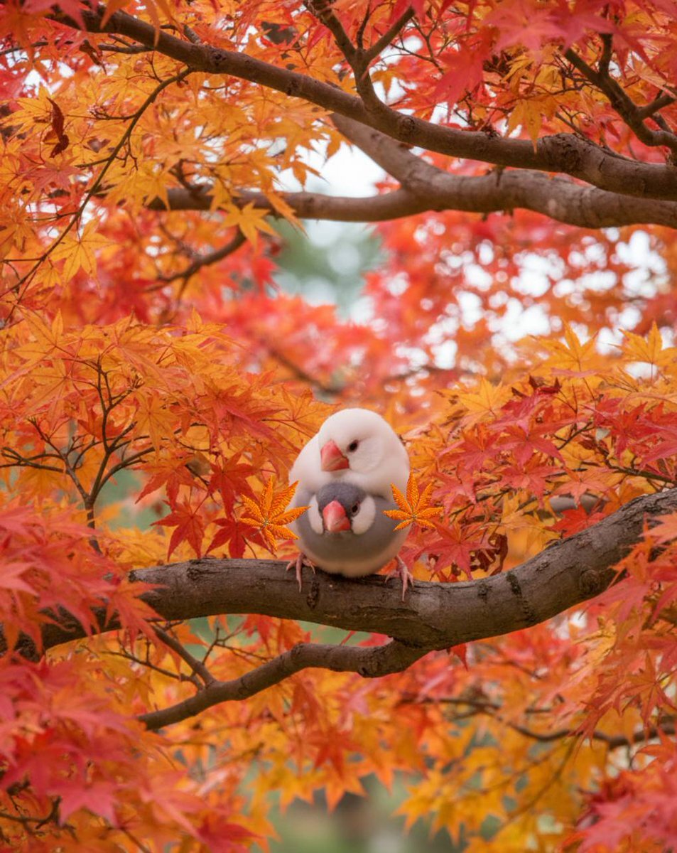 こんにちは🍁 我が家の🍡お団子文鳥ピピ&ポポも美しい紅葉の見学をしているようです……🤣 #文鳥 #小鳥のいる暮らし #かわいい #javasparrow #小鳥 #癒し #紅葉 pic.x.com/6gnXRcULjU