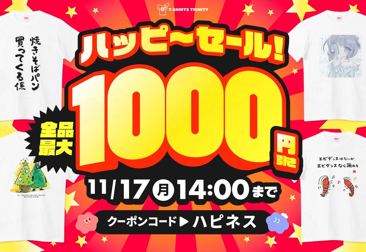 \⚡️全品最大1,000円引き⚡️ハッピーセール‼️🤩/ 人気の半袖Tシャツをはじめ、秋冬アイテムや雑貨が 全品最大1,000円引きで買えるお得なチャンス‼️ 週末はお買い物を楽しんでくださ〜い‼️😊 ⏰ 開催期間 2025年11月13日(木)16:15 〜 11月17日(月)14:00 🎫400円引きクーポン配信