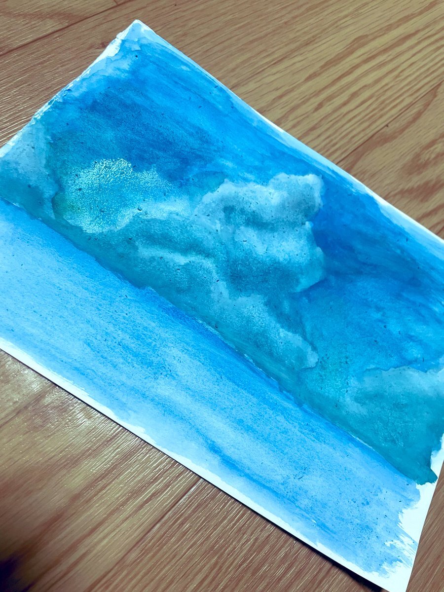 学校の写生会での絵を家に持ち帰って 描いてた小5の次女🎀 絵の具が乾くまでの時間潰しに描いた入道雲の絵🖌️ いい感じ✨ これをささっと描いちゃうの本当にすごい👍✨ #小5 #水彩画 #入道雲 #イラスト #風景画 pic.x.com/GtoPDwrZSd