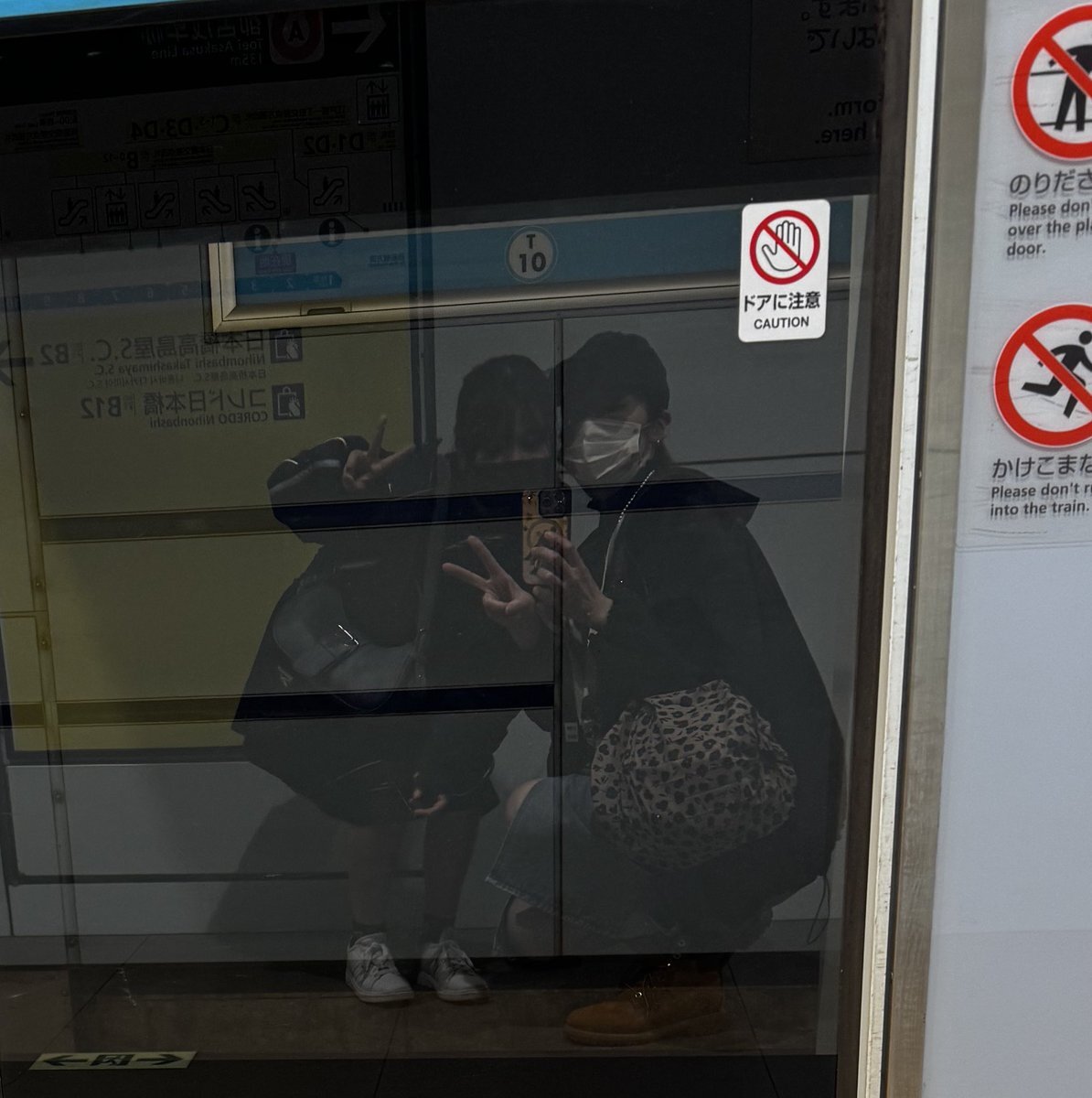 あ゛ーーー歩き疲れた💧 帰り道🚃 ⓁⒶⓈⓉ 鏡が無くて どこぞのホームで記念撮影📸(ナンノ?!) めちゃくちゃ有酸素運動の1日👣👣 (*oⲺ ⲻⲺ)oテクテク 娘よ👧🏻満足したか?! 楽しかったね♡♡♡ また行こ.•♬ #小5 #アラフォー #娘感謝Day #Timberland🥾 #adidas👟 #iLYs🩵♥️💜 x.com/rimilys_s_0129…