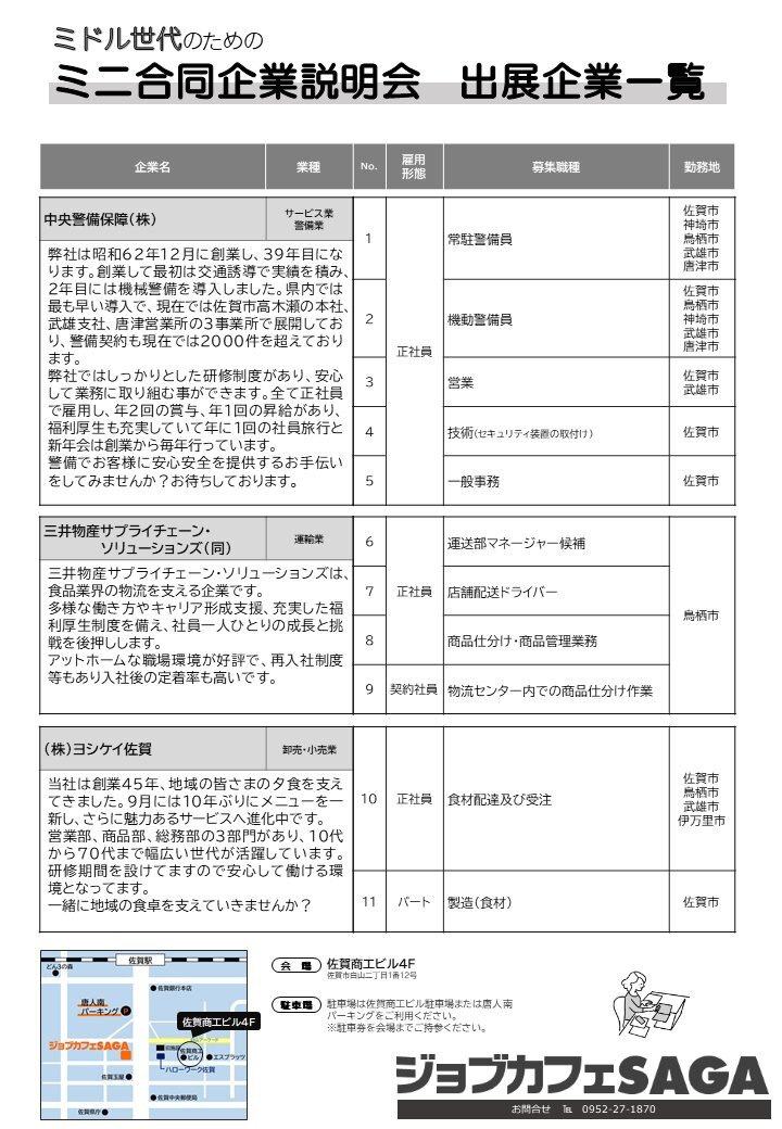 / ミドル世代歓迎求人 を集めました☺ \ ミドル世代のためのミニ合同企業説明会 開催決定! ▼お申込はホームページから jobcafe-saga.info/seminarevent/3… #佐 #佐賀県 #転職 #ミドル世代の転職 #就職氷河期世代 pic.x.com/cBiCyeWYC1