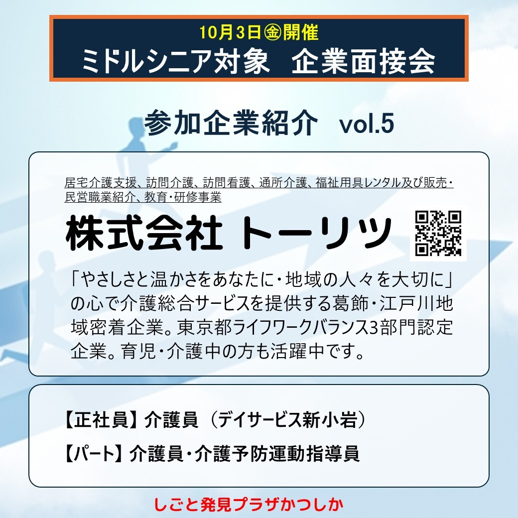 🌟【10/3㊎10:00~15:30開催 #ミドルシニア対象 #面接会】 参加企業を1日1社、ご紹介していきます! katsushika-shigoto.net/news/7903 企業名:株式会社 トーリツ 事業内容:#居宅介護支援 #訪問介護 #訪問看護 #通所介護 他 募集職種:#介護員 #介護予防運動指導員 to-ritsu.co.jp #葛飾 #就活 pic.x.com/Tm7ZYYSTxJ