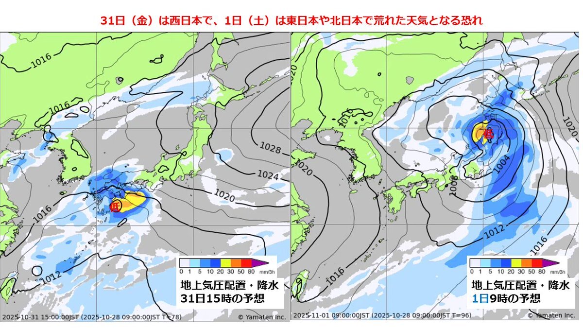 31日(金)は西日本で、1日(土)は東日本や北日本で荒れた天気となる恐れがあります。今後、大荒れ情報が発表される可能性があるので、最新情報にご注意ください。詳しくは「山の天気予報」へ! i.yamatenki.co.jp #ヤマテン #山の天気予報 #大荒れ情報 pic.x.com/fBHUsm93jT