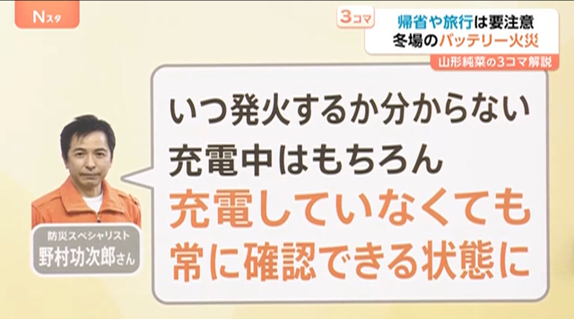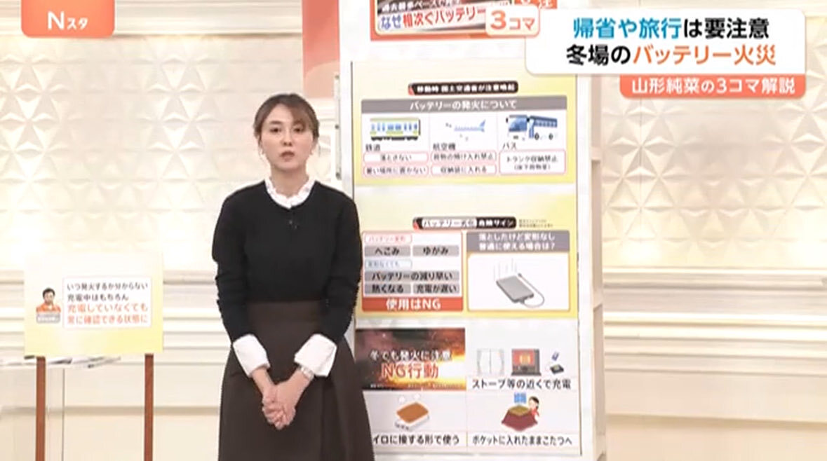 TBSテレビ「Nスタ」にてパネル出演でした🧑🏫 スタジオ解説は、キャスターは山形純菜さんでした🎤😃 素晴らしい解説と演技を取り入れて伝えて頂き感謝です🍀 制作スタッフの皆様もお疲れ様でした🙏 #TBS #Nスタ #モバイルバッテリー #火災 #山形純菜 #野村功次郎 news.yahoo.co.jp/articles/3a1a7… pic.x.com/1p3buWzzLe