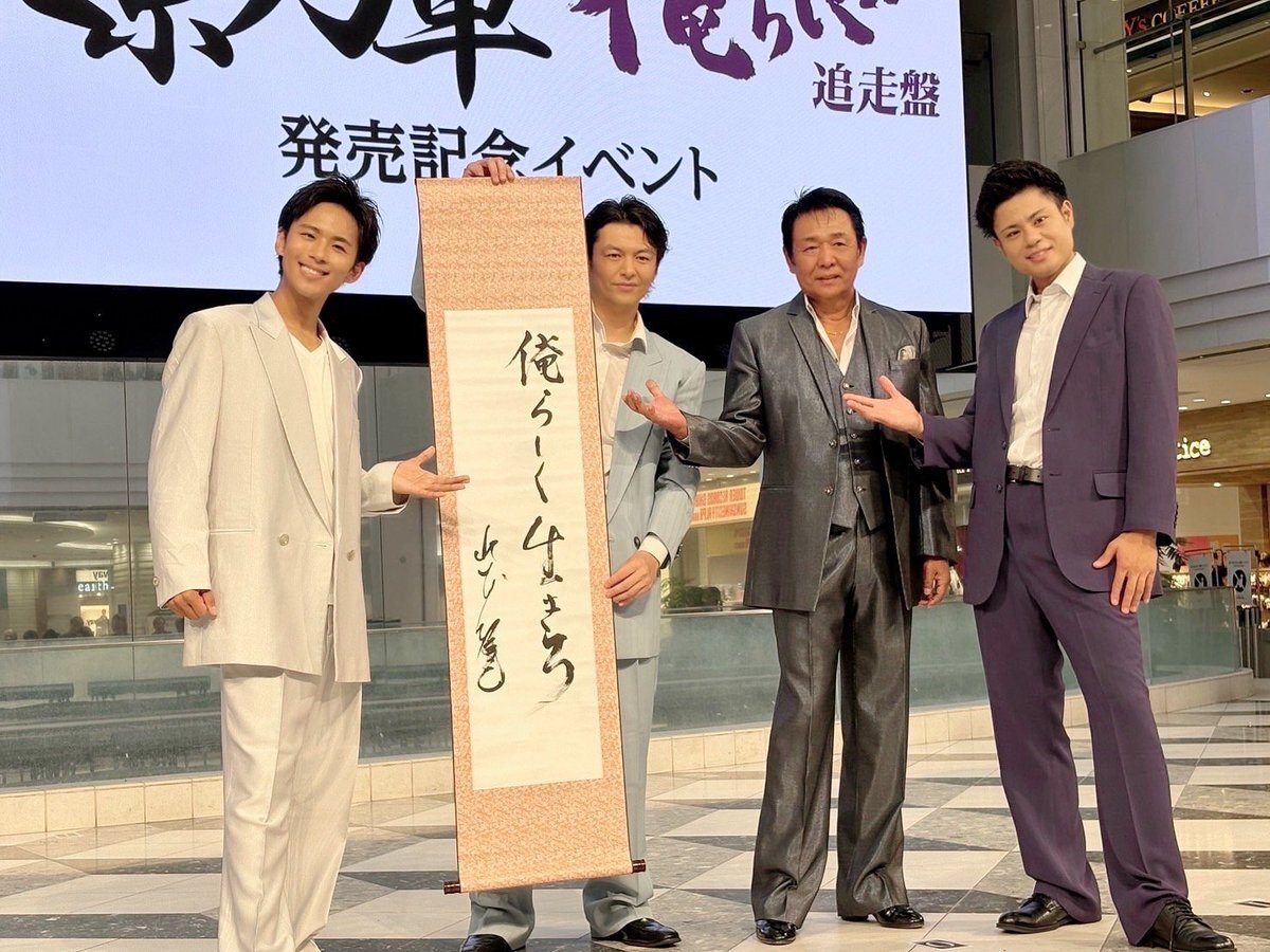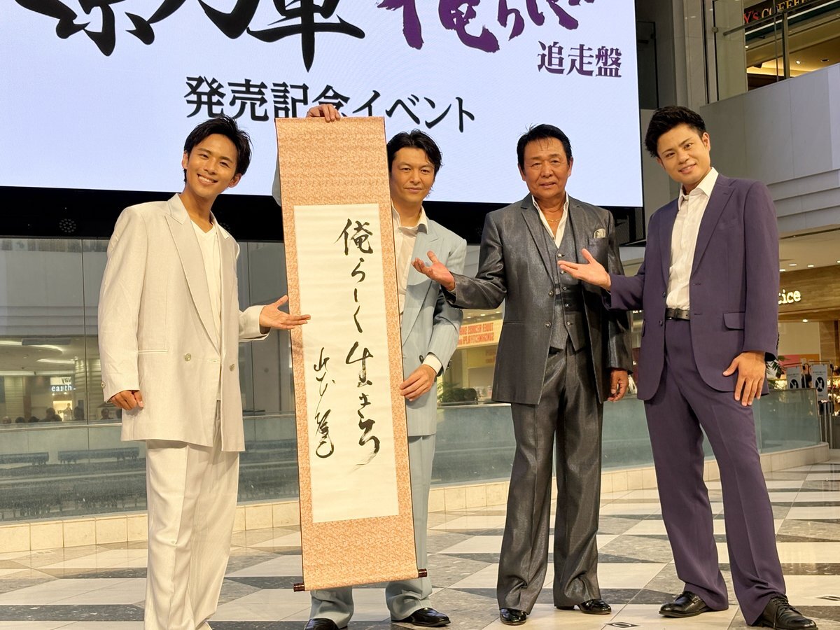 #東京力車 さんが「俺らしく…」の追走盤を3タイプ同時発売されました。 東京・池袋サンシャインシティ噴水広場で行われた発売イベントには、同曲を作詞した #山本譲二 さんがサプライズで登場。 「俺らしく生きろ」と書かれた直筆の書で、熱いエールを送られました! otokaze.jp/news/999999993… pic.x.com/PswI6vJcHH
