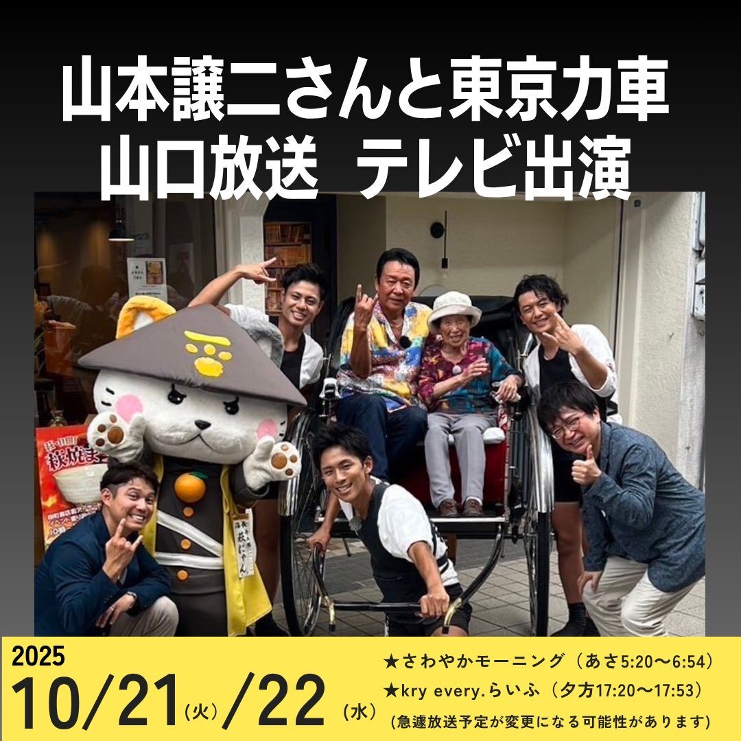 #東京力車 が“レジェンド俥夫”訪問 笑いと感動のVTR(になっているはずw) byスタッフ 10/21(火)22(水) #KRY山口放送 でOA予定。 ※変更になる場合がございます。 #中原省吾 さん #成田弘毅 アナウンサー ■さわやかモーニング kry.co.jp/sp/tv/sawayaka/ ■kry every らいふ kry.co.jp/sp/tv/raifu/