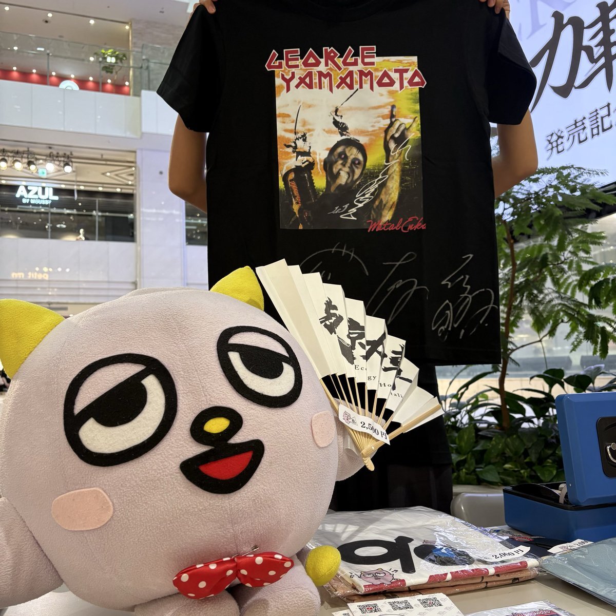 #東京力車 ×#山本譲二  ̄V ̄ ̄ ̄ ̄ ̄ ̄ ̄ ̄ ̄ 池袋・サンシャインシティ 噴水広場で開催の東京力車イベントでは、先ほどサプライズ出演した山本譲二さんのメタルTシャツ👕も販売中!なんと、譲二さんだけじゃなく東京力車のサインが入った激レアコラボVer!ボクも売り場で待ってるまるー✨ pic.x.com/1ndoUEfduP