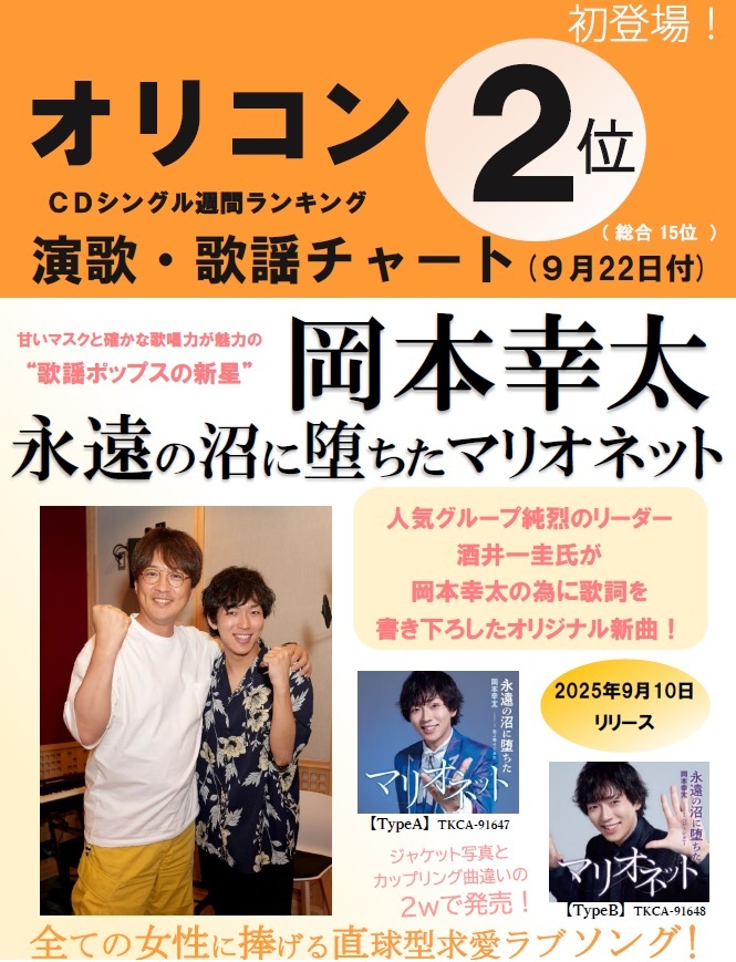 #岡本幸太】 東海エリアの皆様 📻出演情報のお知らせ‼️ 📻#ぎふチャン(#岐阜放送) 「ぎふチャン演歌♪カウントダウン」 🗓️11/16(日)11:00~13:55📡 📻#CBCラジオ 「CBC歌謡ベストテン」 🗓️11/23(日)21:00~22:00📡 新曲「永遠の沼に堕ちたマリオネット」 🎬MVはコチラ👉youtu.be/tGESJhQLMQE pic.x.com/RzdLRRGhsq