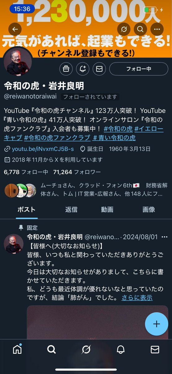 今更ですが、令和の虎の岩井さんにフォローしていただいていたのですね、、、 ご挨拶が遅れてしまいました。 絡みたかったな、、、 私の馬鹿! #令和の虎 # #岩井良明 @reiwanotoraiwai pic.x.com/5lSem9ZCb7