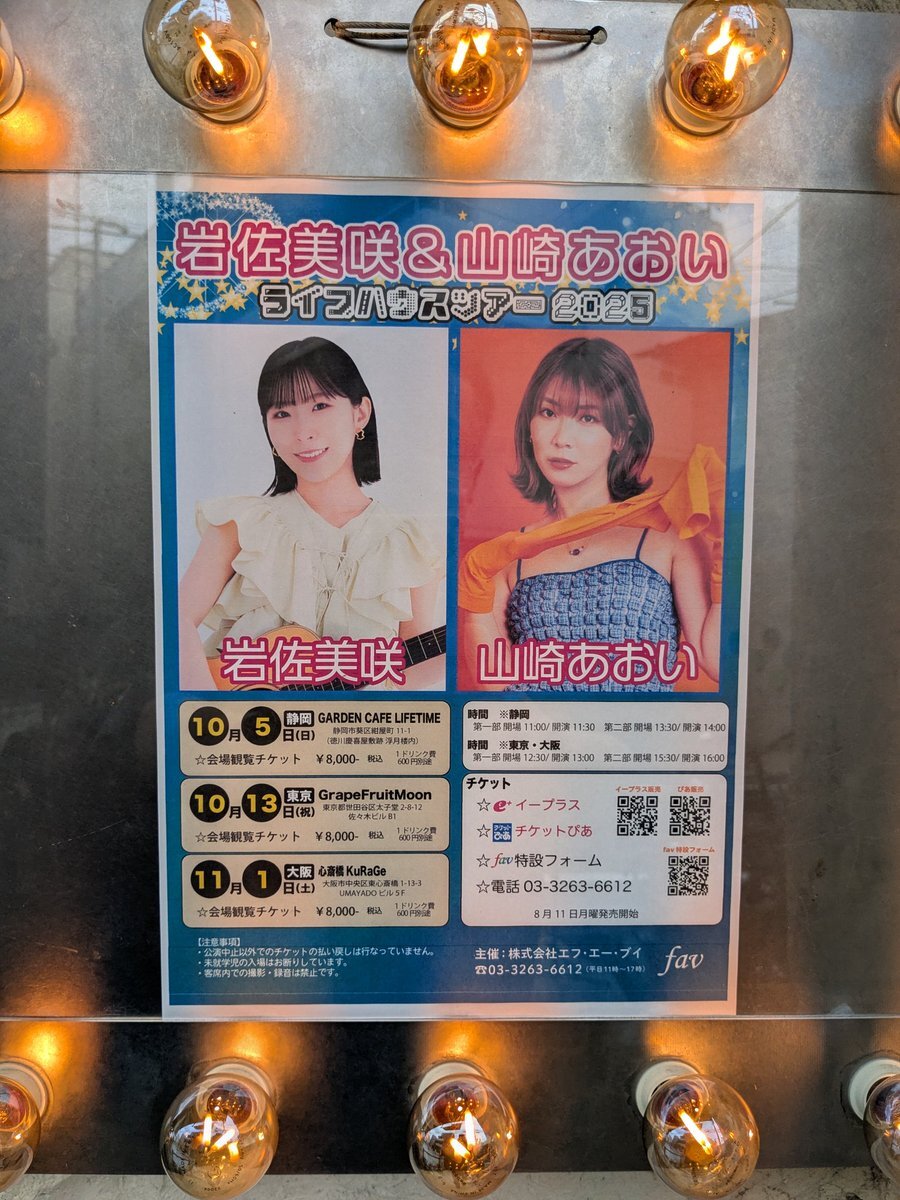 岩佐美咲&山崎あおいライブハウスツアー2025 10/13(月・祝)東京公演13:00/16:00 #三軒茶屋 GrapeFruitMoon 10/5静岡公演セットリスト 「恋の終わり三軒茶屋」聖地巡礼発売年レポ ameblo.jp/tkondo/entry-1… #岩佐美咲 #わさみん #演歌 #ビッグエコー #歌謡曲 #山崎あおい #イベント情報 #ライブ情報