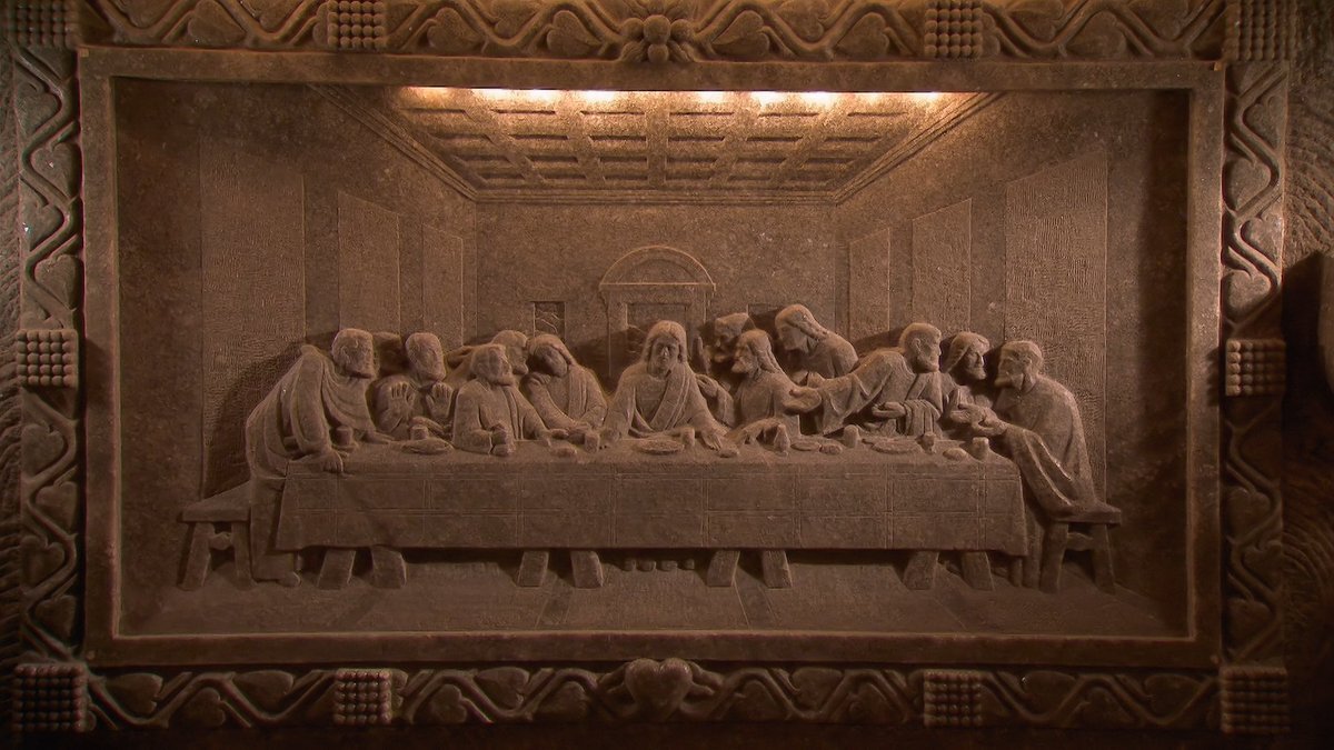 あす #TBS世界遺産 は #ポーランド の #ヴィエリチカとボフニャの岩塩坑。 ヴィエリチカ岩塩坑にも巨大な礼拝堂があります。 あの有名な #最後の晩餐 も! もちろんこれもすべて #岩塩 で彫られたもの。 さらに立ち入りが禁止されたエリアに入ると塩とは思えない #クリスタル の結晶が! pic.x.com/FrUBLD5fOR
