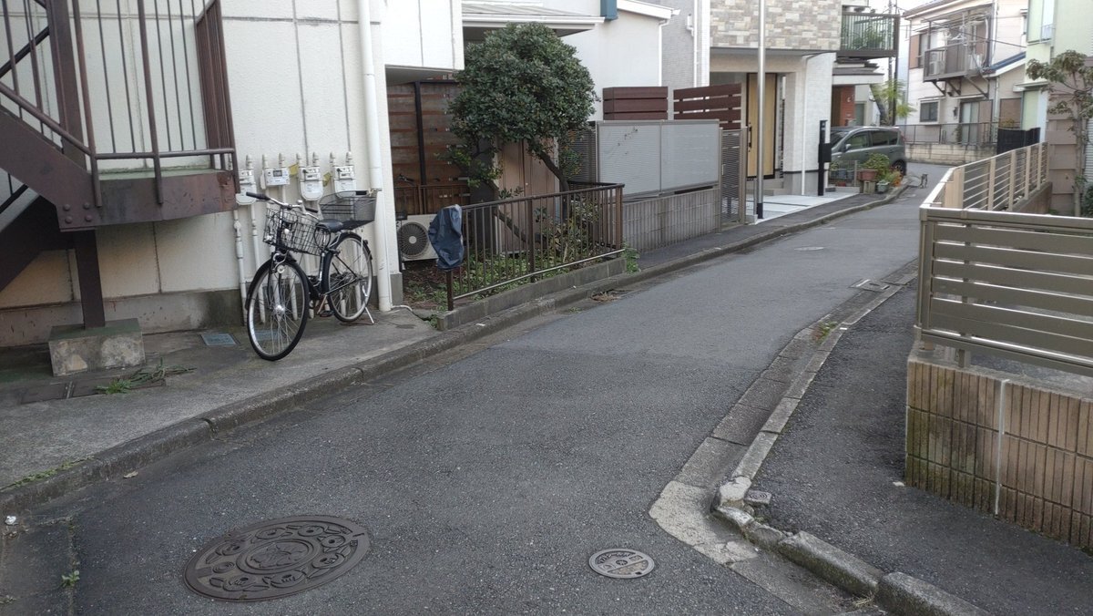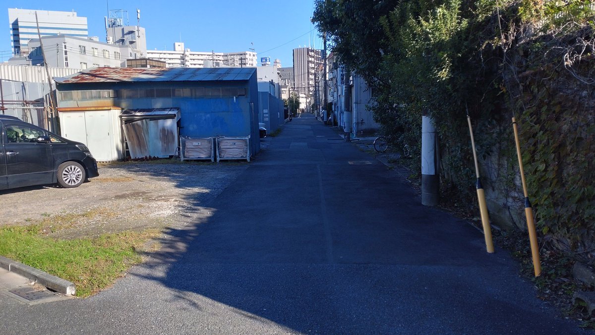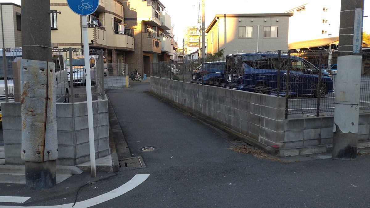 二ヶ領用水元木堀・渡田堀の堀跡をたどって、川崎小学校の西側から国道15号線の南側に延びる道を進み、今では元木と渡田新町の町境となっている昔の川崎宿と渡田村の境まで来たら、右の道もいい感じ! この境を予定していなかった右に進むと、暗渠っぽさが溢れる素晴らしい道だった!#川崎市 #川崎区 pic.x.com/U08xQfaweY