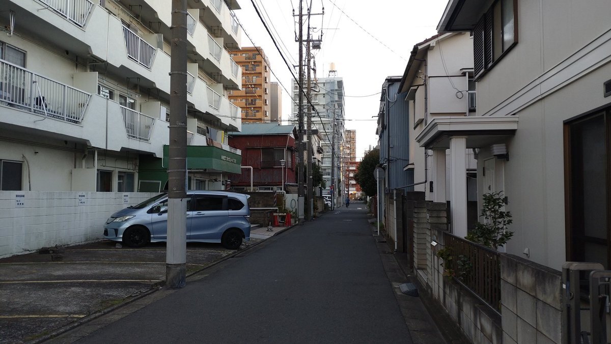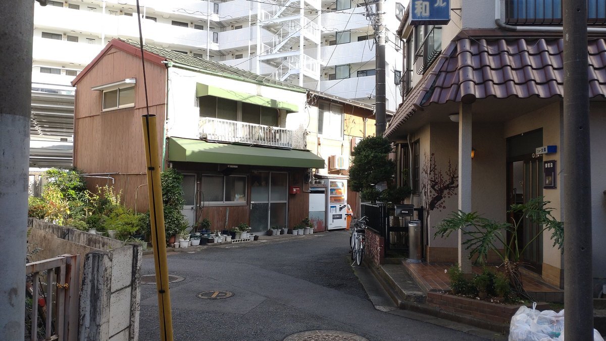 矢向踏切の南西側でJRの線路を越えた二ヶ領用水渡田堀の堀跡の道を進むと、次の角から先は元木堀を追って回り込んだ道で、少し進んで日進町の簡宿街に入る! すると渡田堀もやっぱり京急本線に突き当たり、結局前回と同じく左に進んで、上並木公園の南で線路をくぐることになった!#川崎市 #川崎区 pic.x.com/RJIUJXSC1x