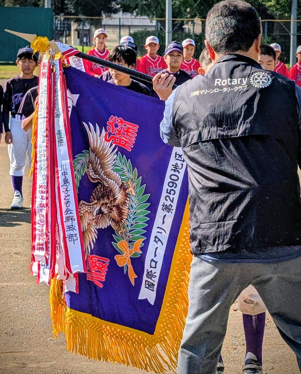 所属する #川崎マリーンロータリークラブ が後援する #川崎区 の #少年野球 新人戦決勝は最後まで目の離せない展開に⚾️👀 私は、川崎区少年野球連盟後援会副会長も務めており、閉会式では祝辞の機会も頂きました。 #川崎市 #野球 #青少年育成 #奉仕活動 #本間ケンジロウ pic.x.com/1kSclxpSnS