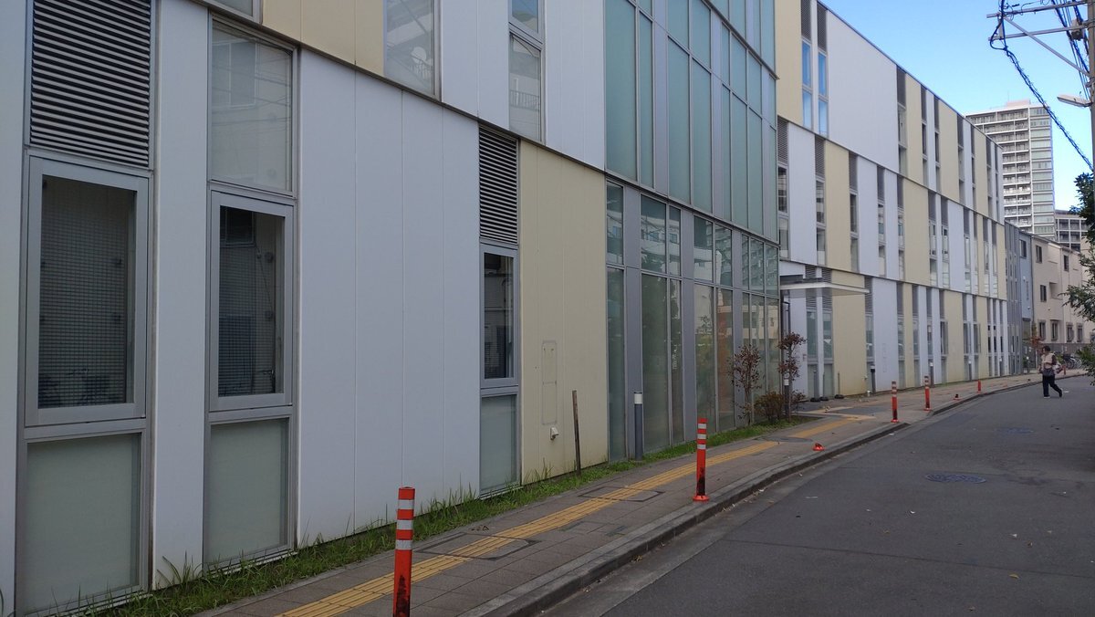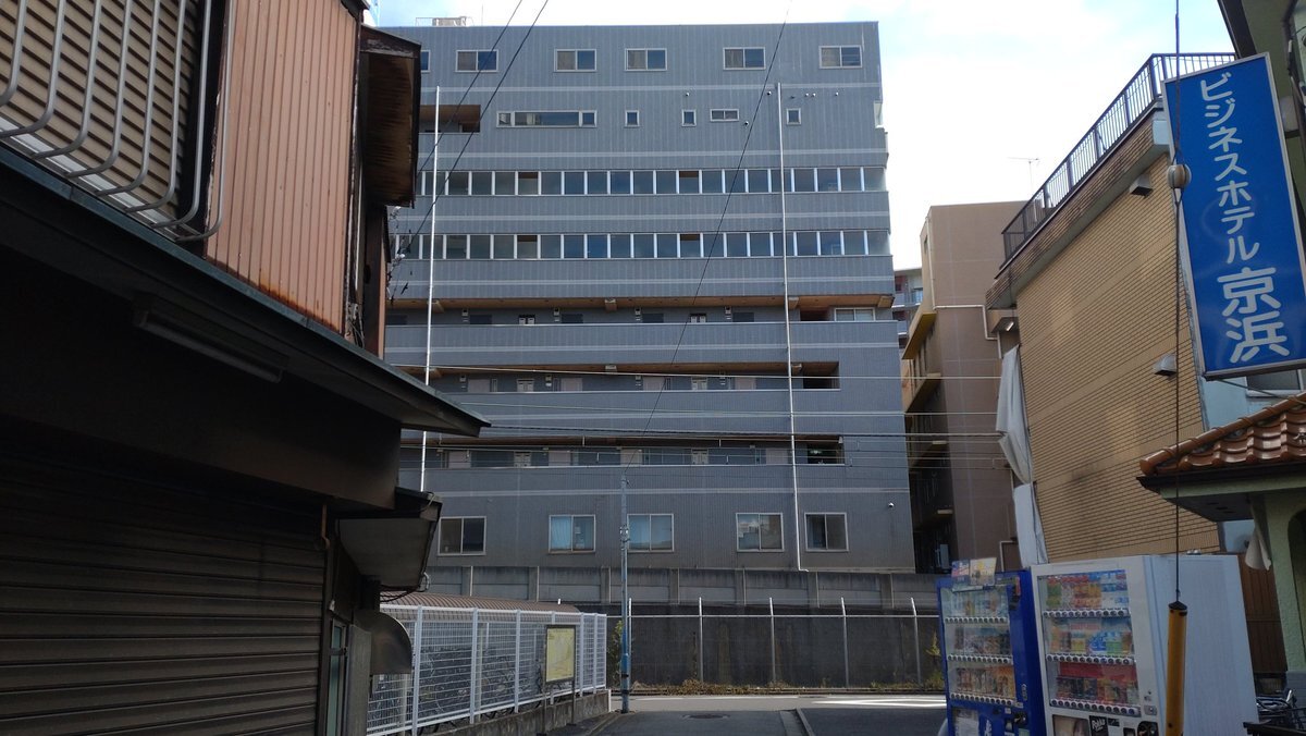 日進町の簡宿街に入る手前で、二ヶ領用水元木堀の堀跡が通り抜けた建物は、東海道線と南武支線の線路を繋いでいた東海道本線貨物支線の線路跡に建つ「ふれあいプラザかわさき」で、線路のカーブに合わせて建物も曲がっていた! この先に少しだけ、元木堀の堀跡が道として残っている!#川崎市 #川崎区 pic.x.com/naUqxtTKQ0